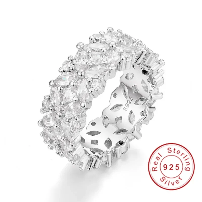 طقم خواتم أصلي من BAND للنساء والرجال، مصنوع من الفضة عيار 925، مرصع بالكامل بأحجار ألماس صناعية، خاتم زفاف وخطوبة بتصميم أبدي.