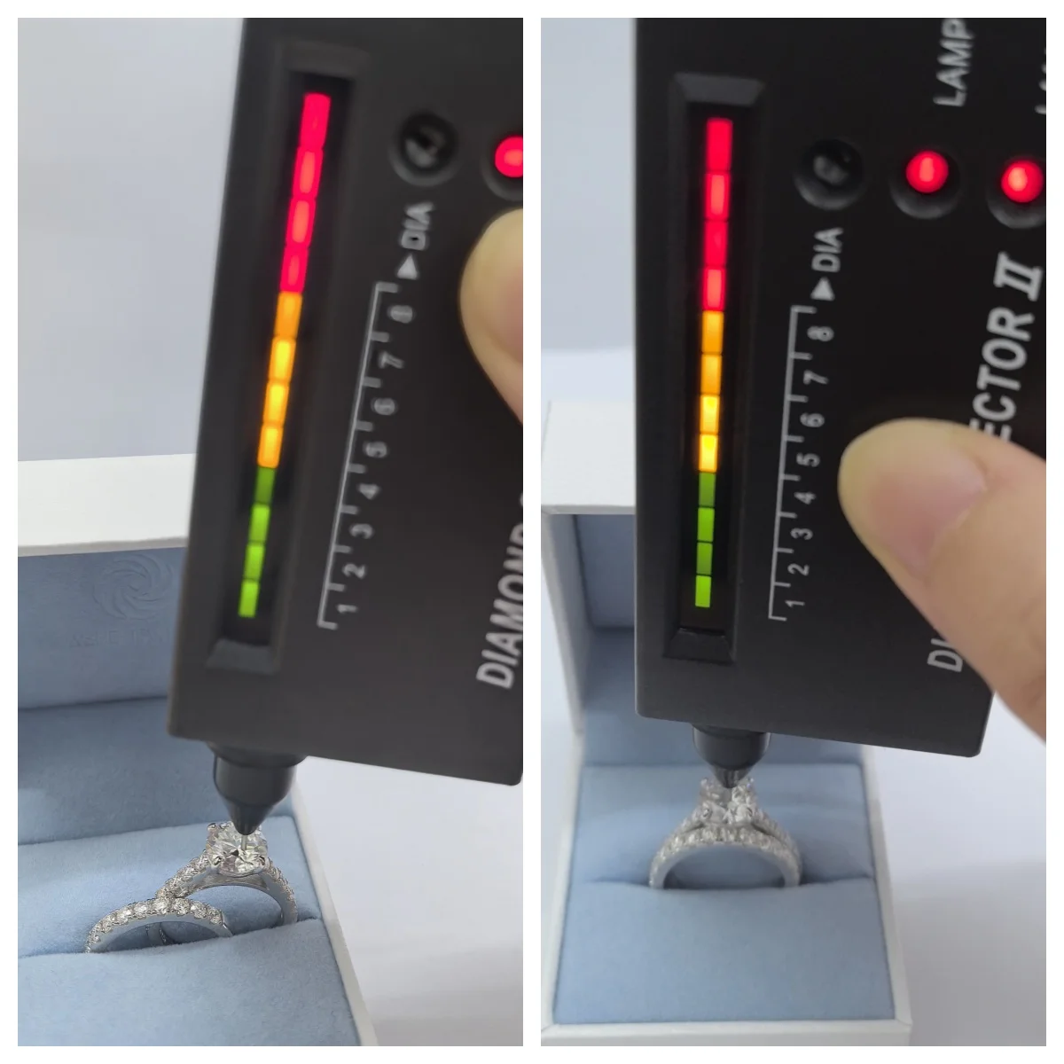 • جميع الأحجار التي نختارها هي أحجار مويسانيت ممتازة من فئة D وVVS1، تتميز ببريق أكثر إشراقًا من الماس، ولكنها أرخص منه!