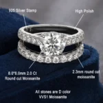 طقم خاتم الخطوبة والزفاف هذا المرصع بحجر المويسانايت للنساء هو هدية رائعة لزوجتك أو حبيبتك أو والدتك أو أصدقائك وعائلتك في المناسبات الخاصة مثل أعياد الميلاد والذكرى السنوية وعيد الأم وعيد الحب وعيد الشكر عيد الميلاد!