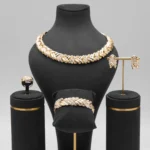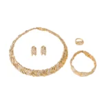 طقم مجوهرات دبي مطلي بالذهب عيار 18 قيراطاً مرصع بالكريستال