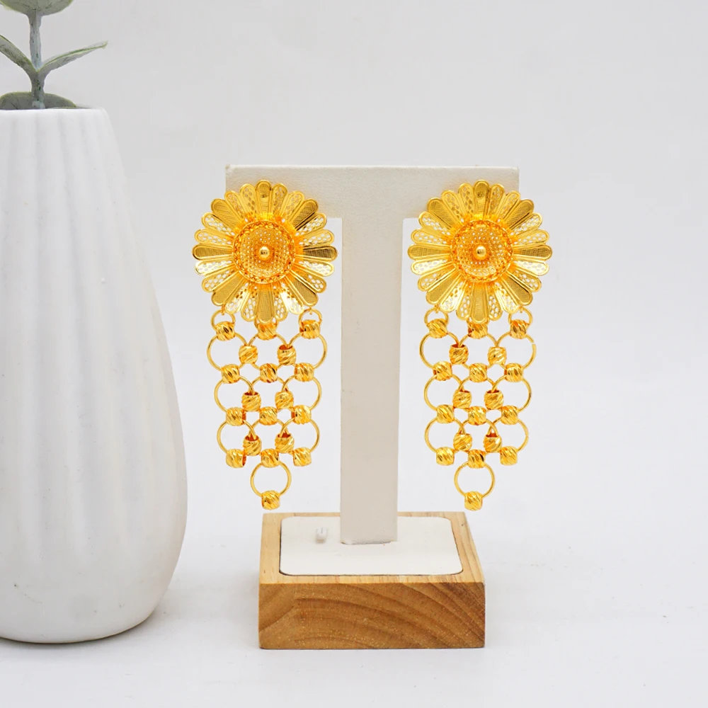طقم مجوهرات أنيق مكون من قلادة وأقراط، لون ذهبي دبي