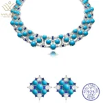 طقم مجوهرات WUIHA العرقي، مصنوع من الفضة الإسترليني عيار 925 بنسبة 100%، مرصع بالفيروز الأزرق والياقوت الأزرق المخبري والماس عالي الكربون، متوفر بالجملة