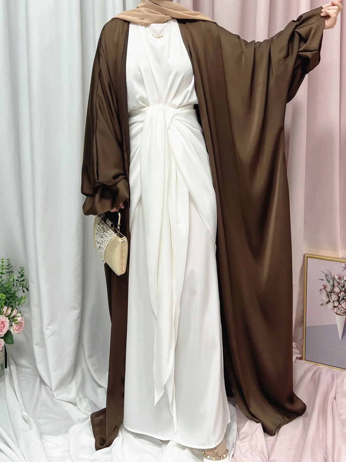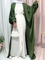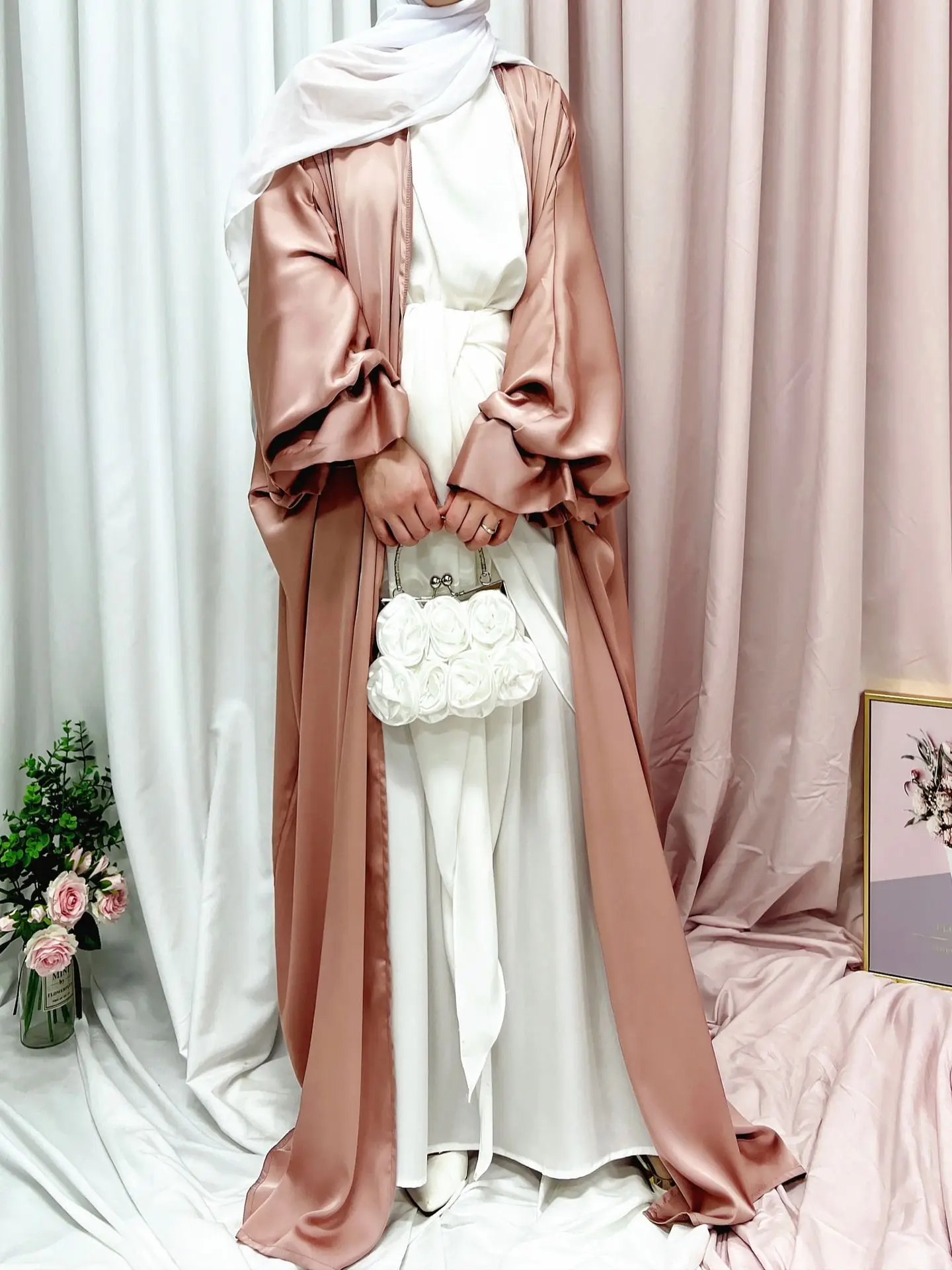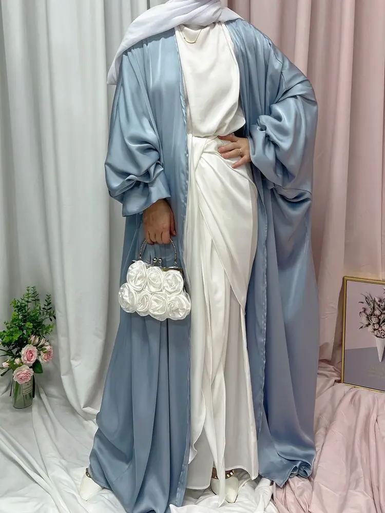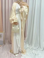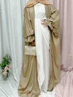 عبايات رمضانية عصرية بأكمام منتفخة فضفاضة لعبايات المسلمين رداء ناعم Musulmane عباية أنيقة حريرية خدمة عبادة عربية إسلامية ملابس