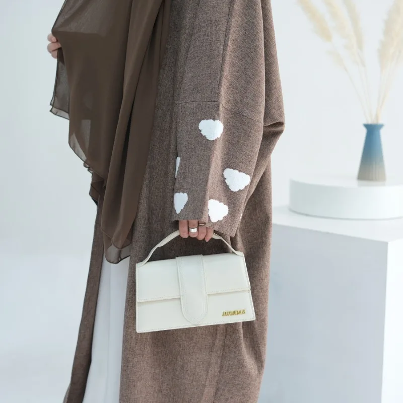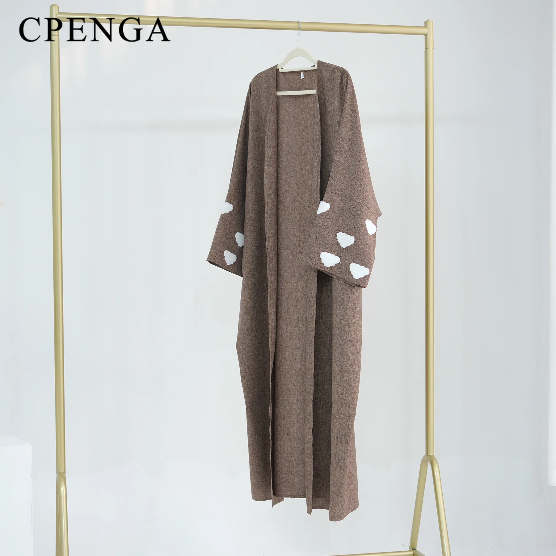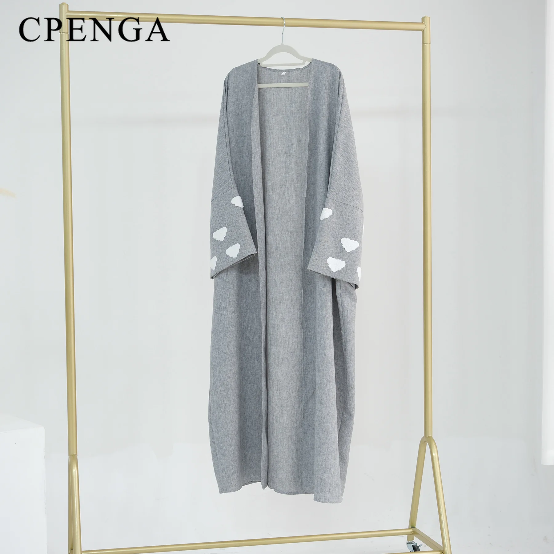عباية أنيقة للعيد من تصميم سعودي كلاودز، معطف محتشم للنساء، فستان مطرز من القطن والكتان بأكمام طويلة، مناسب للإسلام والتركيا.