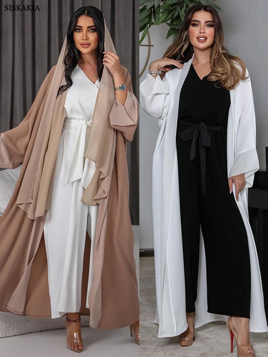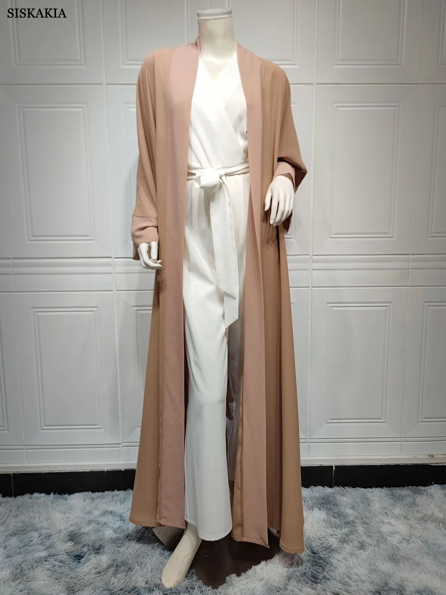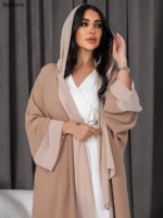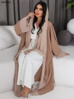 عباية مفتوحة من الأمام للنساء موضة قصيرة مرقعة صلبة عربية دبي كيمونو مغربي كوربان عيد جديد رداء خارجي إسلامي 2023