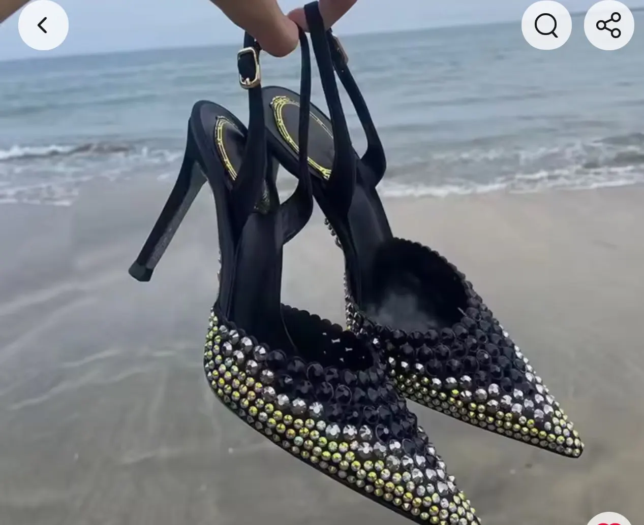 Luxury Rhinestones Gradient Slingbacks Women Pumps Fashion Bling Crystal Banquet Stiletto High Heels Fashion Party Prom Shoes