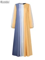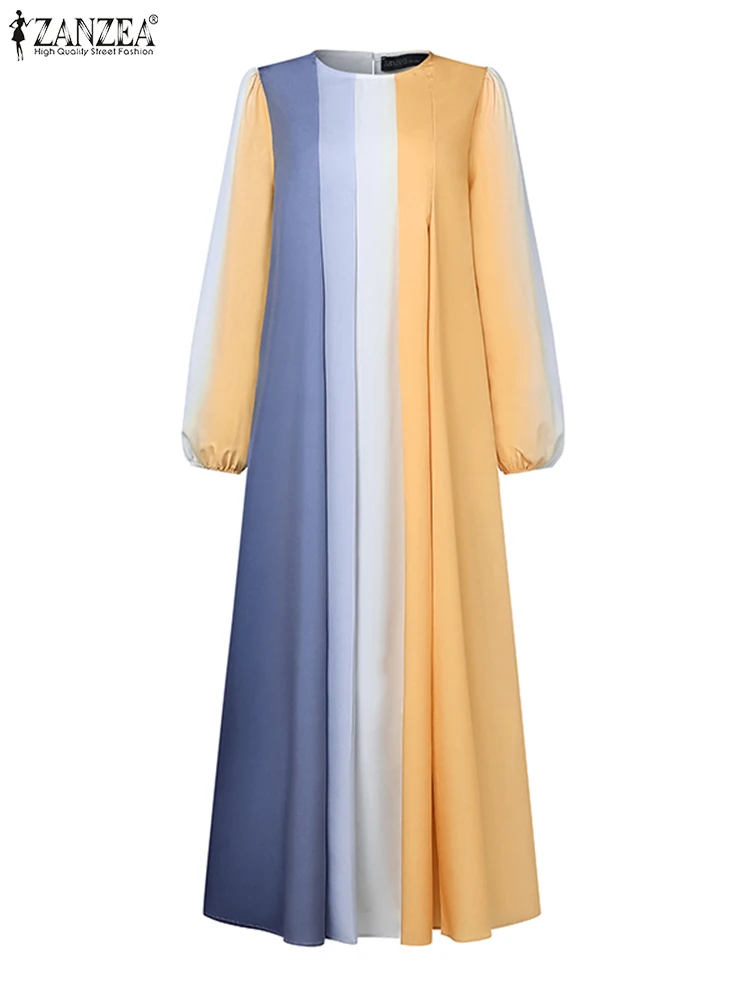فساتين حجاب عباية إسلامية أنيقة من ZANZEA فستان صيفي للعيد مبارك رداء نسائي بأكمام طويلة بألوان متباينة فستان ماكسي ملابس IsIamic