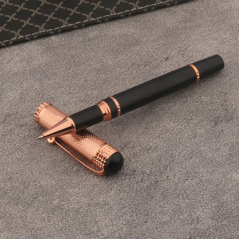 قلم حبر جاف فاخر من المعدن الأسود، قلم حبر جاف ذهبي اللون