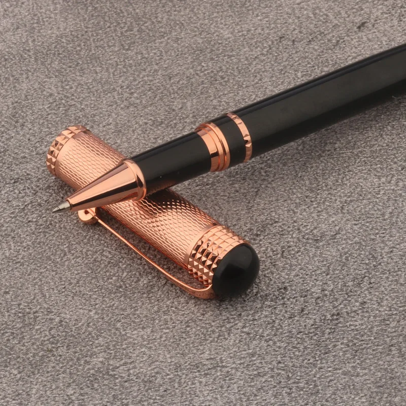 قلم حبر جاف معدني فاخر أسود ذهبي قلم الكرات الدوّارة أدوات مكتبية مستلزمات مدرسية هدية كتابة
