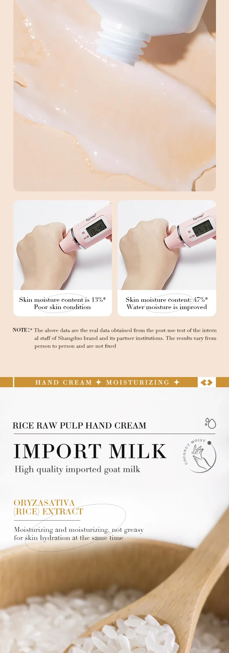 كريم أرز لليدين، مبيض، مكثف، مجدد، فائق المقاومة للتجاعيد، مغذي، مرطب، منعش، غير دهني، كريم للعناية بالوجه والجسم