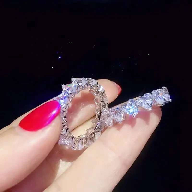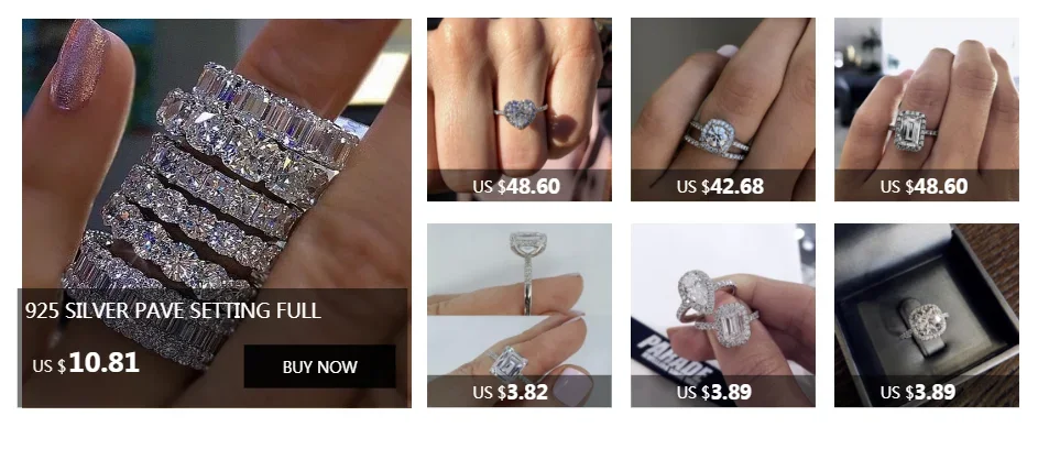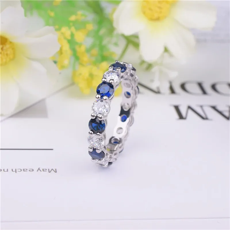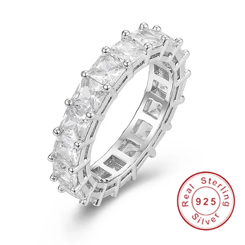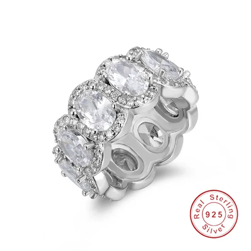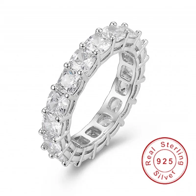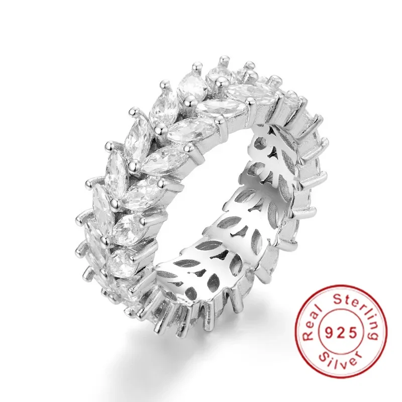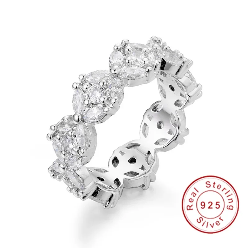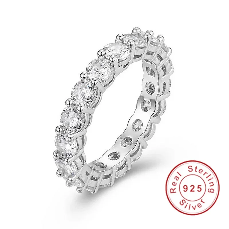 مجموعات خواتم الفرقة الأصلية للنساء والرجال 925 الفضة تمهيد إعداد كامل مقلد الماس الخلود المشاركة خاتم حجر الزفاف
