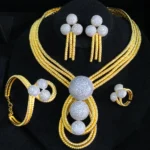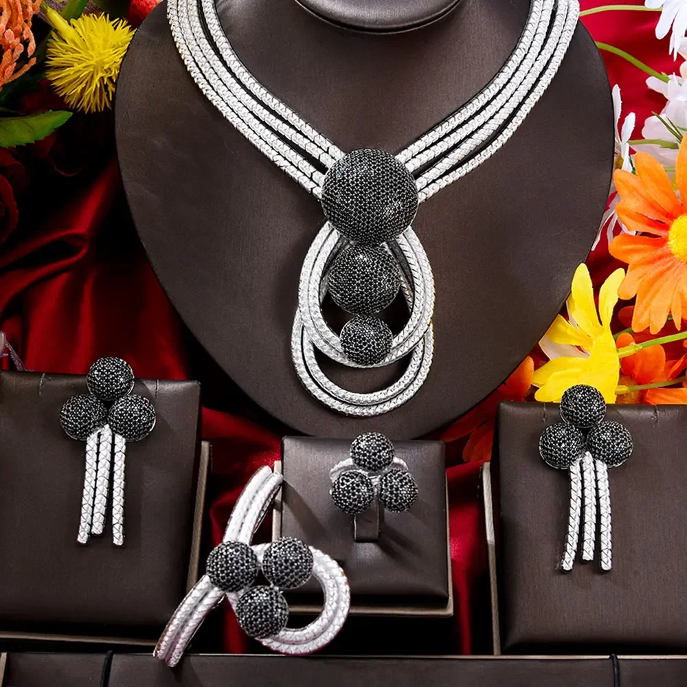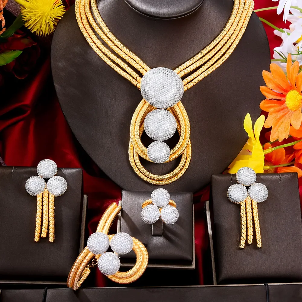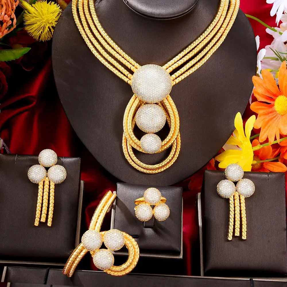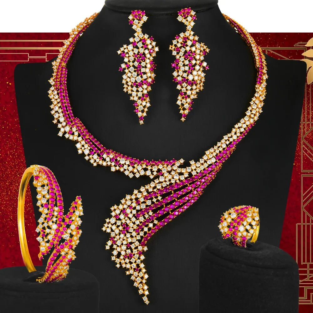 مجموعة مجوهرات زفاف فاخرة جديدة من Missvikki، تتضمن قلادة وأساور وأقراط وخواتم، عالية الجودة، مثالية لحفلات الزفاف والمناسبات النسائية.