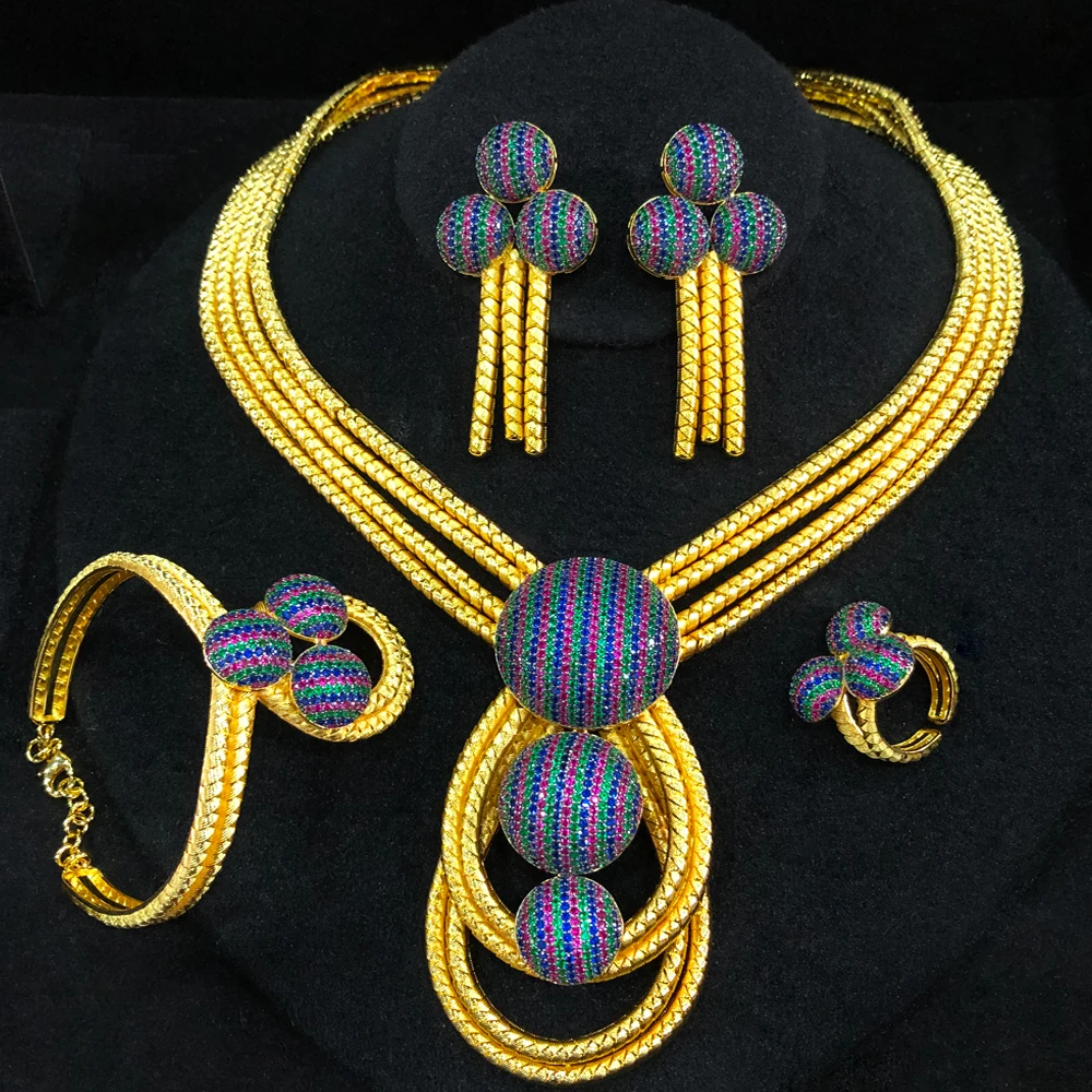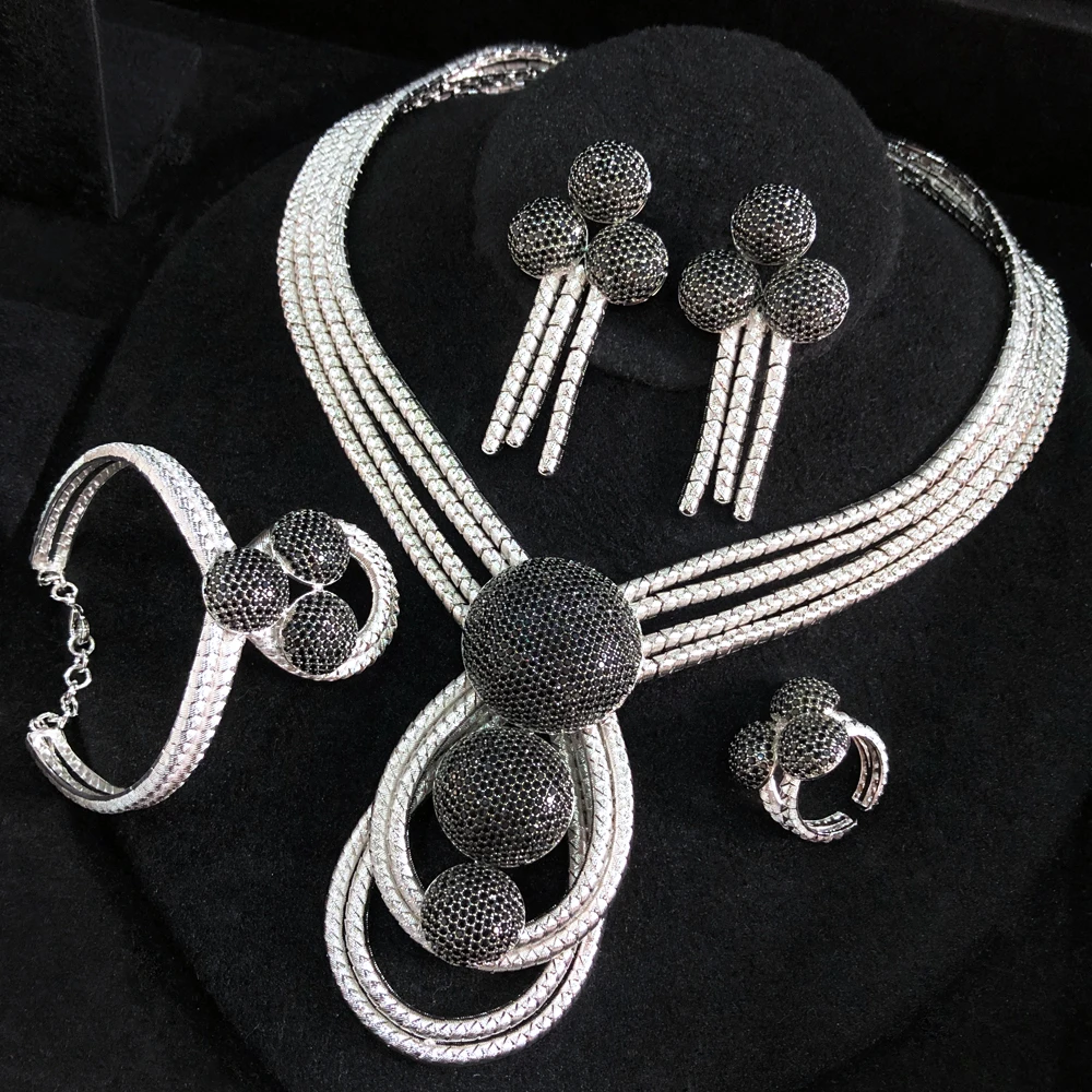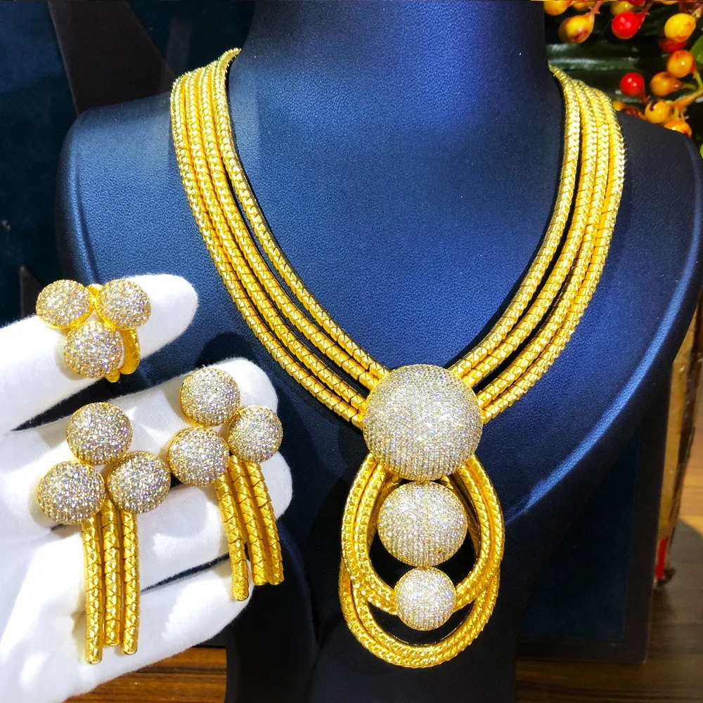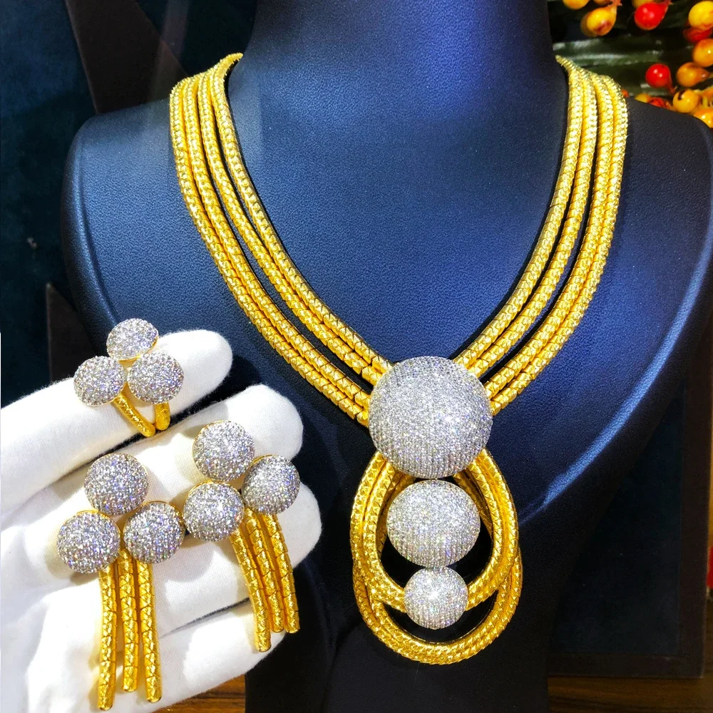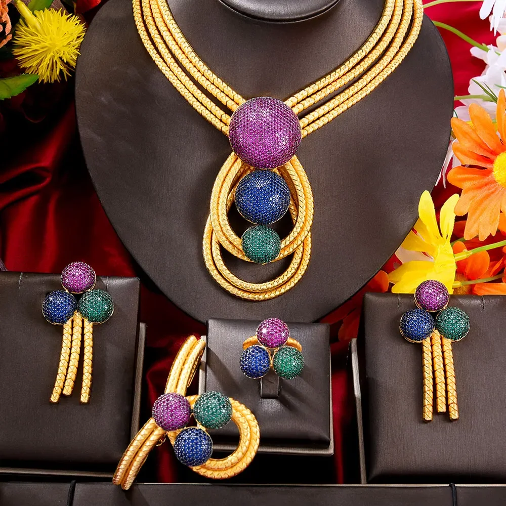 مجموعة مجوهرات زفاف فاخرة جديدة من Missvikki، تتضمن قلادة وأساور وأقراط وخواتم، عالية الجودة، مثالية لحفلات الزفاف والمناسبات النسائية.