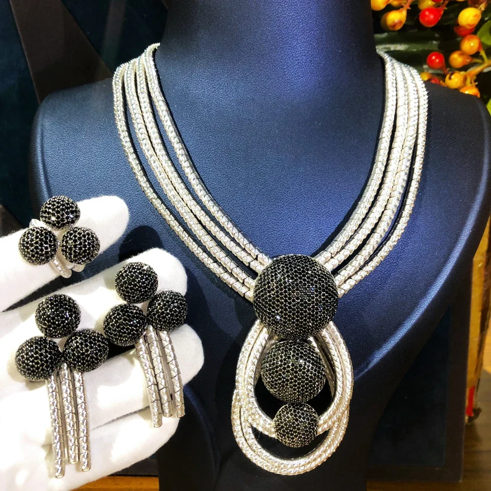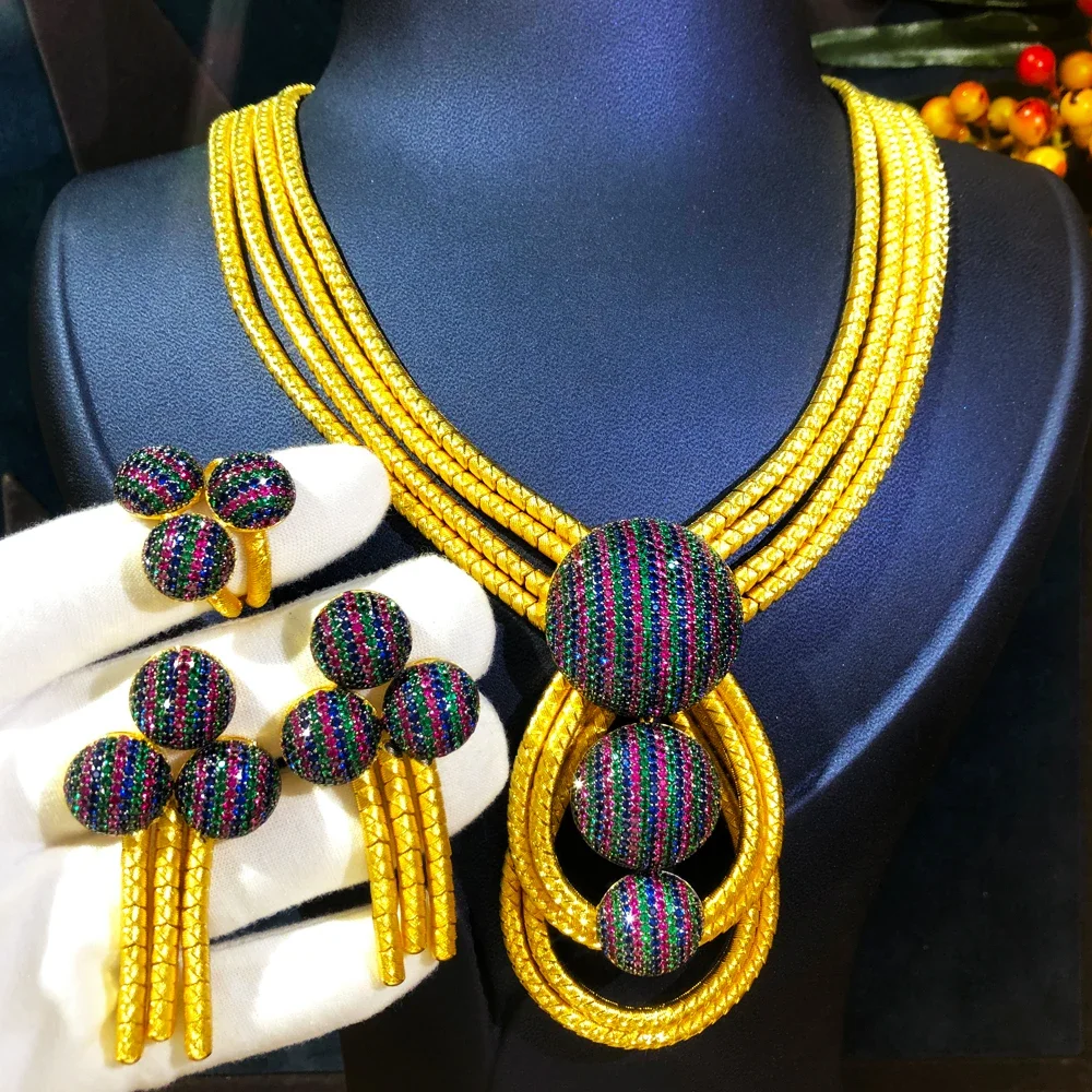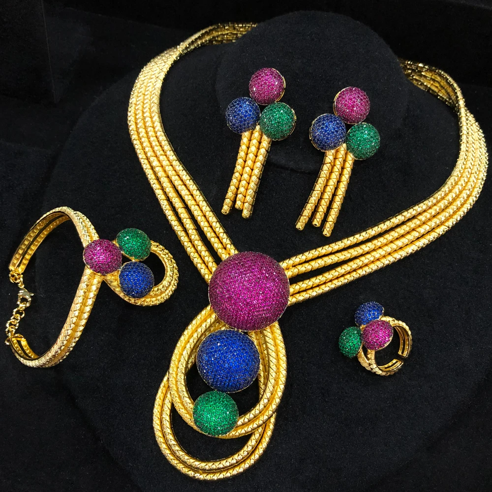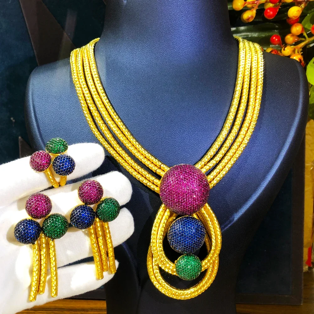 مجموعة مجوهرات زفاف فاخرة جديدة من Missvikki، تتضمن قلادة وأساور وأقراط وخواتم، عالية الجودة، مثالية لحفلات الزفاف والمناسبات النسائية.