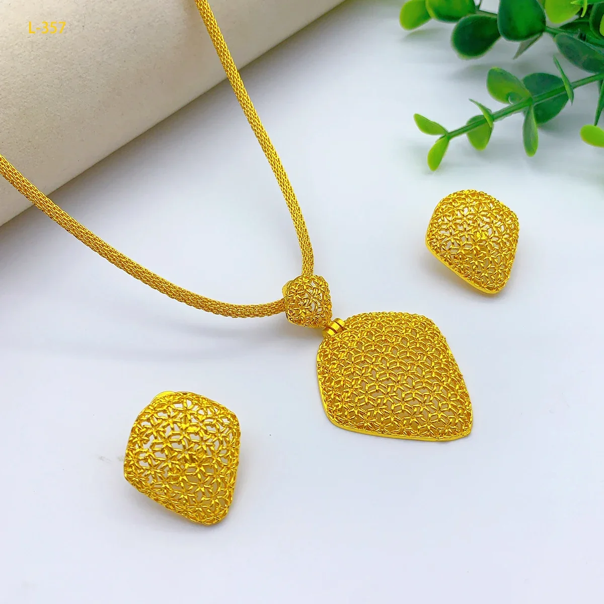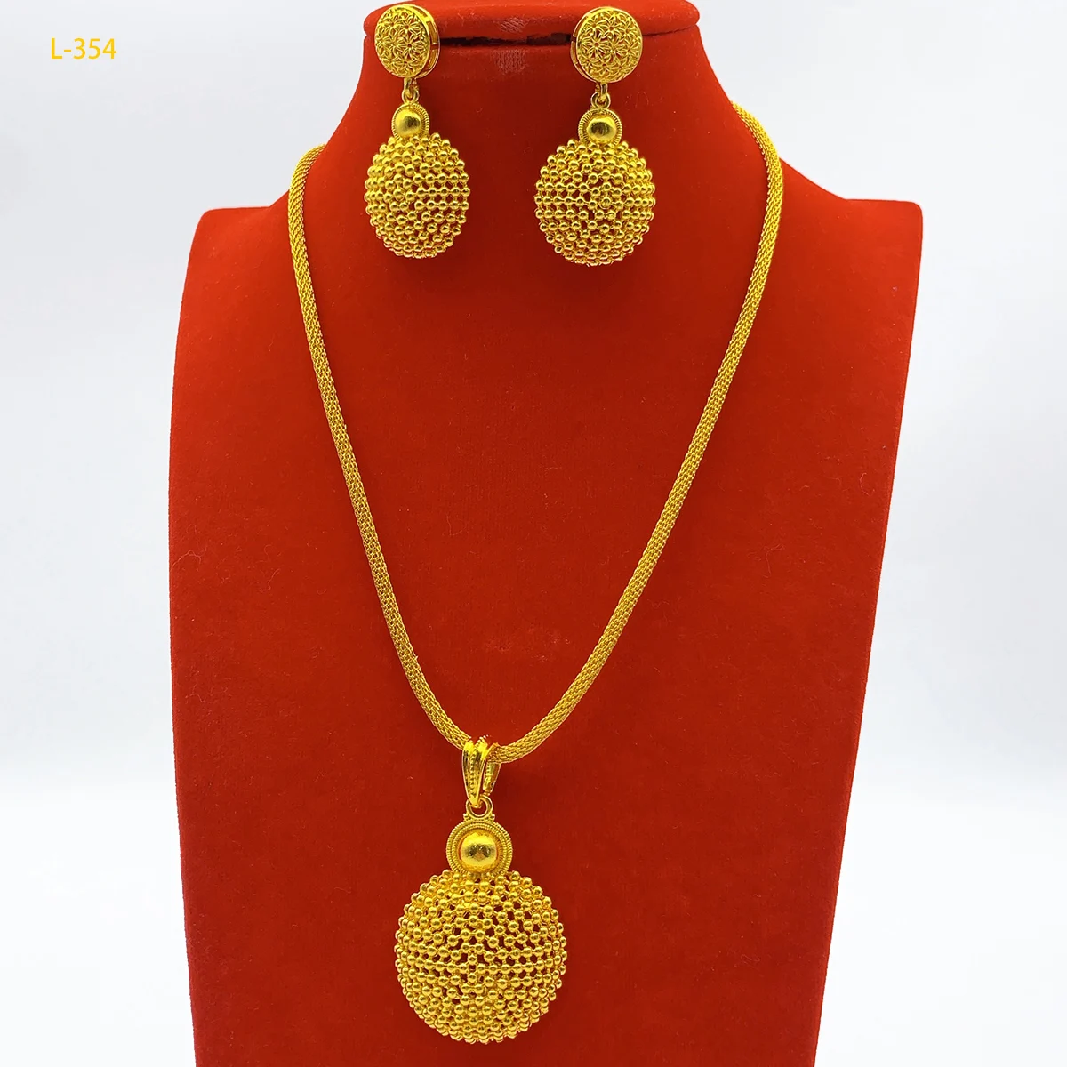 أطقم مجوهرات نسائية مطلية بالذهب عيار 24 قيراط من دبي بتصميم كلاسيكي وقلادة وأقراط وسوار ساحر ومجوهرات حفلات الولائم