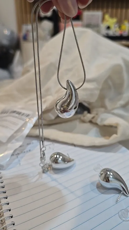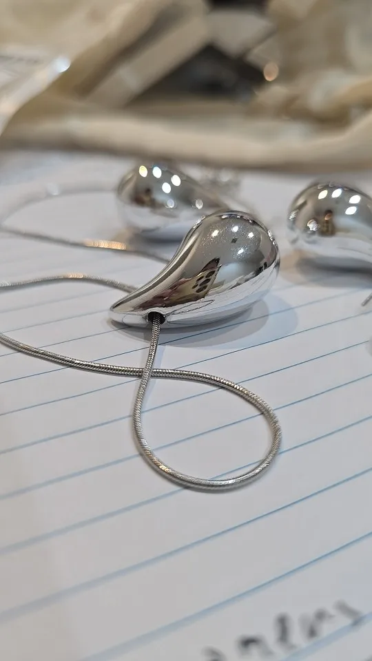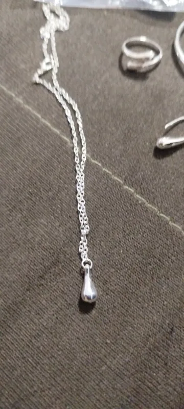 قطرة كبيرة جدًا. لامع. على الرغم من أن القرط كان به خدش. يشعر وكأنه قطرة من البلاستيك. قلادة قوية.