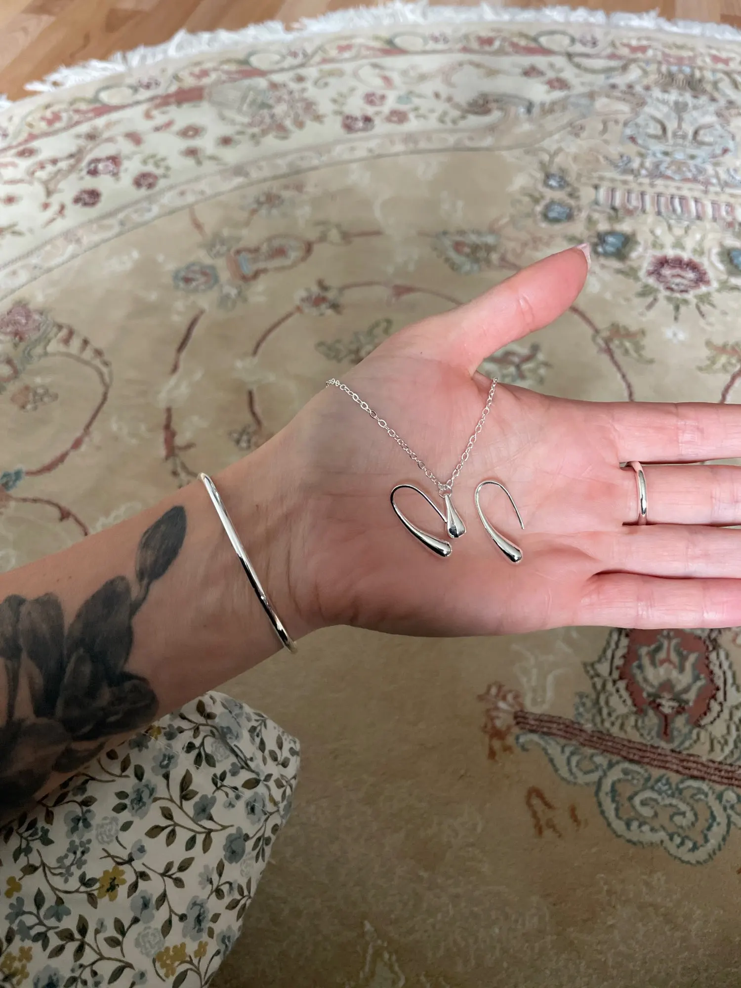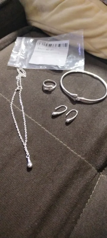 القلادة والأقراط لطيفة، لم يعجبني السوار بنفس القدر، لكنه يفي بما يقوله.