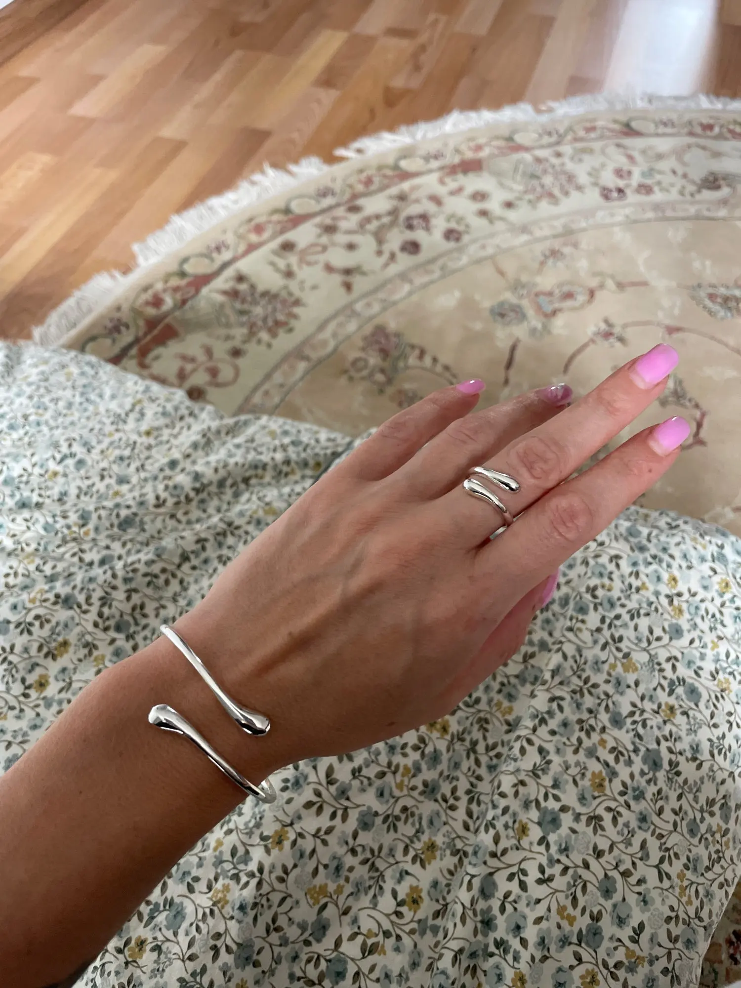 جميل جدًا، مصنوع من الفولاذ، الخاتم قابل للتعديل، السوار قابل للتعديل، يبدو رائعًا جدًا.
