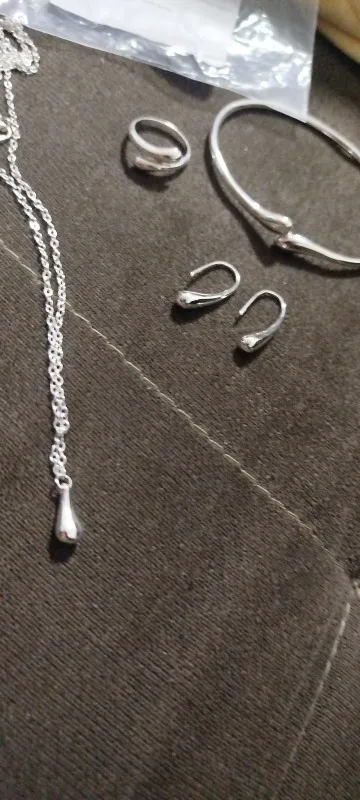 91 مراجعة لـ مجموعة مكونة من 4 قطع بسيطة وقلادة وسوار وأقراط مكونة من أربع قطع مناسبة لمجوهرات الخطوبة ومجموعة مجوهرات عصرية على شكل دمعة للنساء