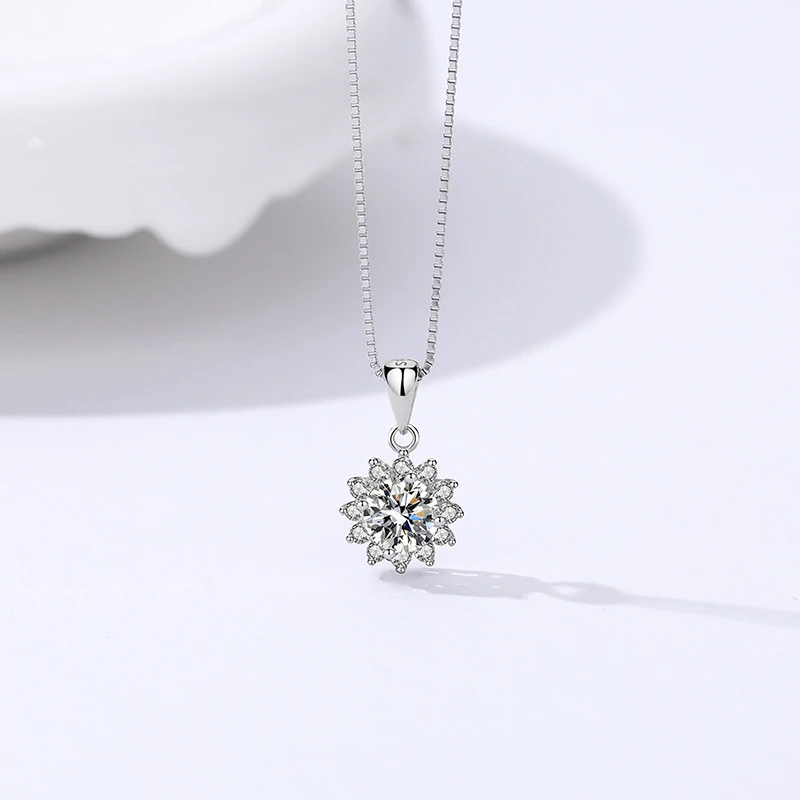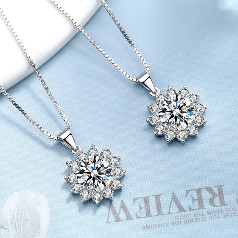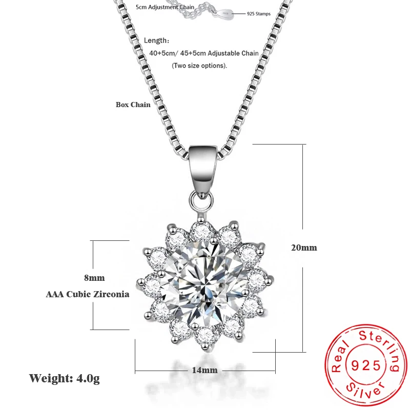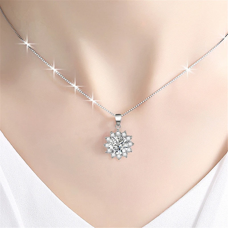 موضة رائعة عباد الشمس الزركون قلادة القلائد النساء مجوهرات الزفاف 925 فضة حجر الراين ندفة الثلج سلسلة سحرية