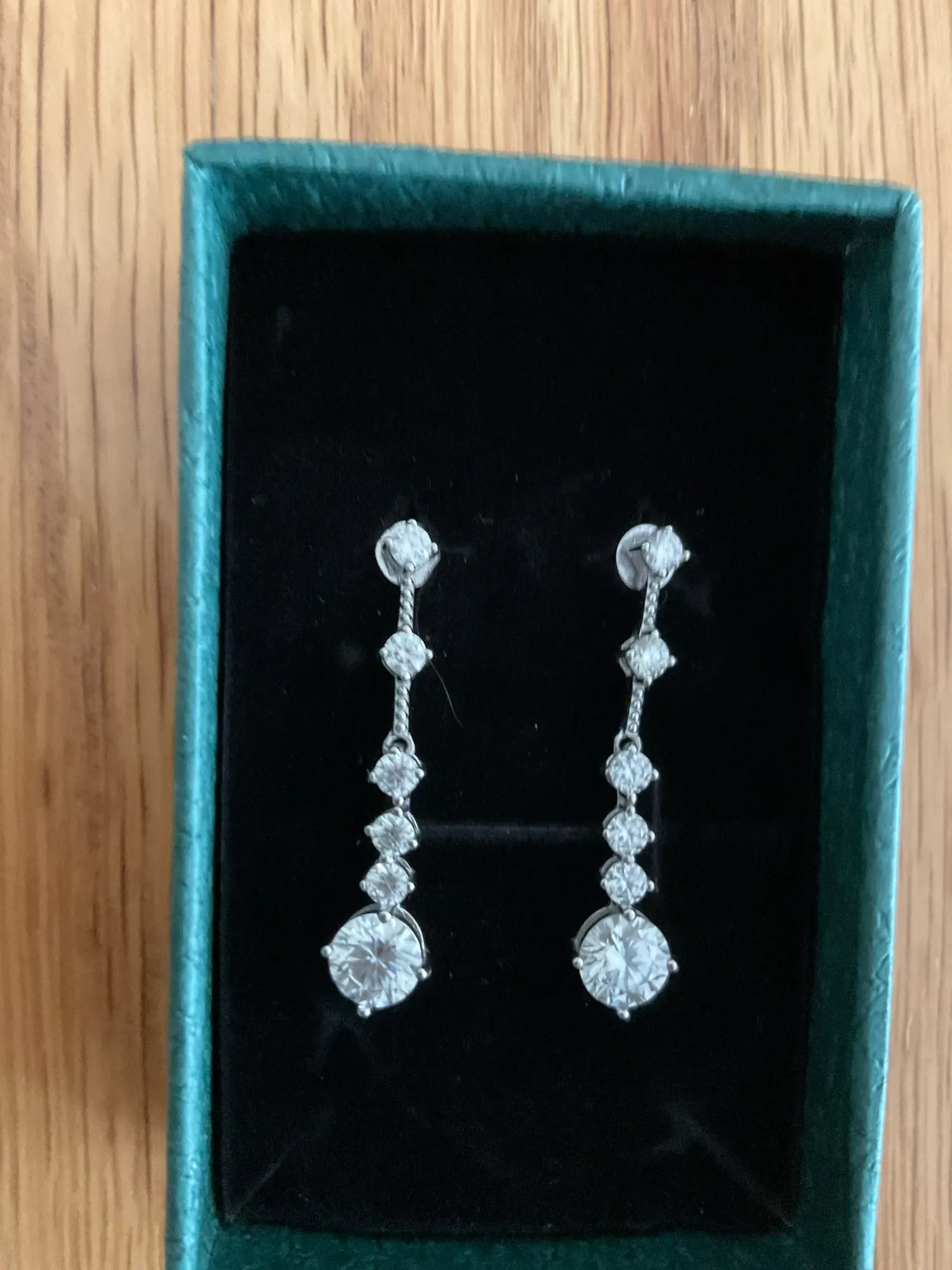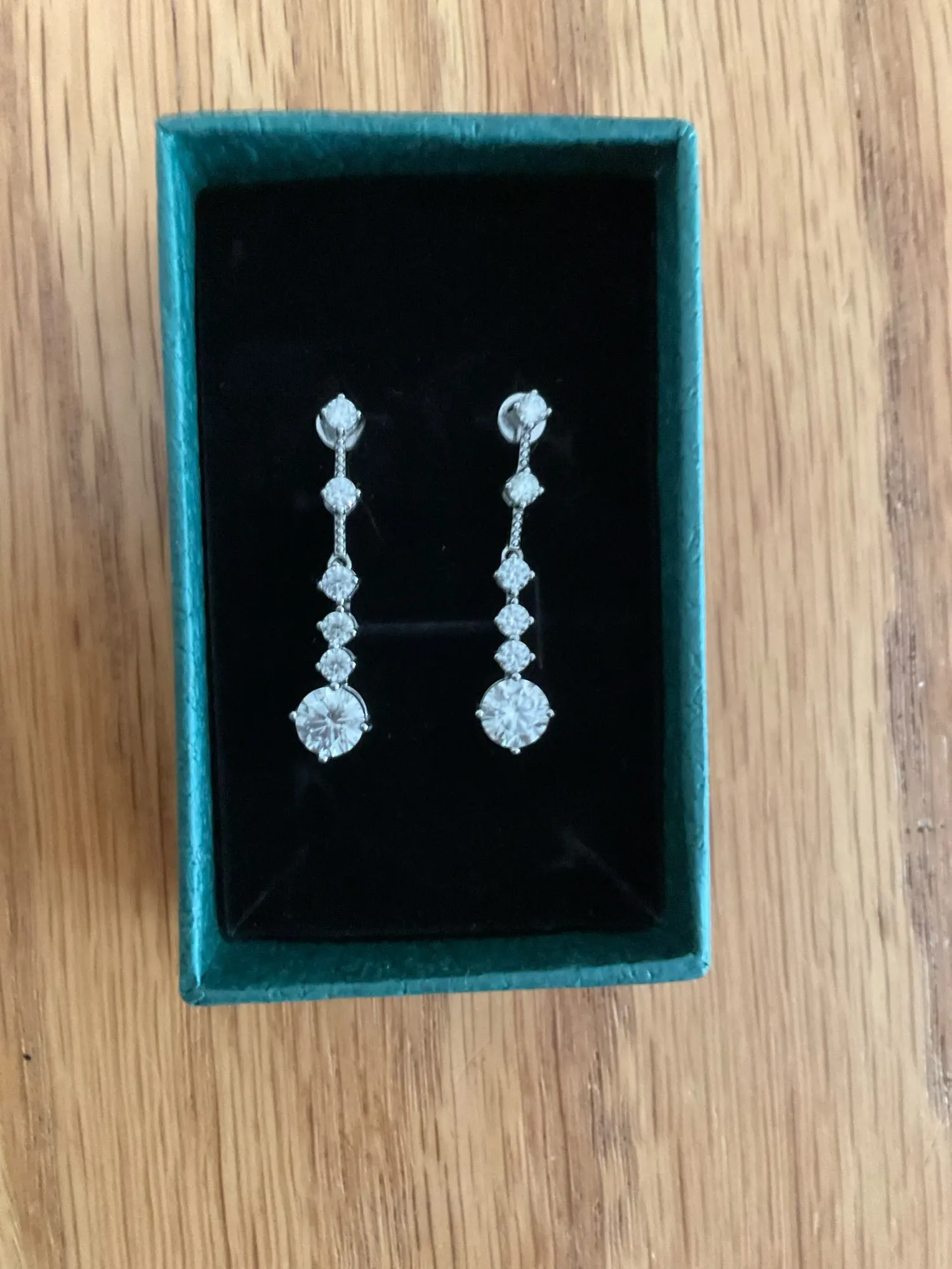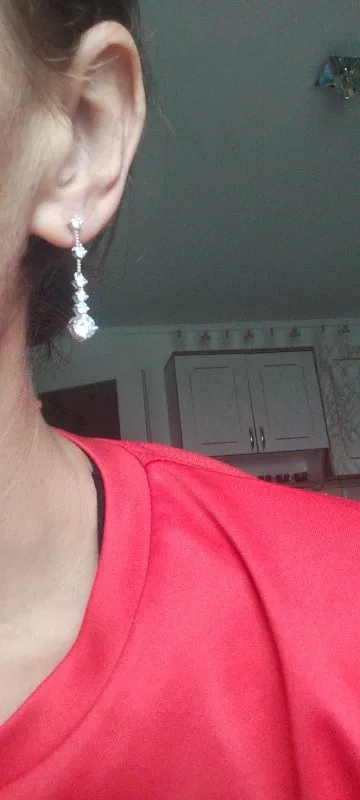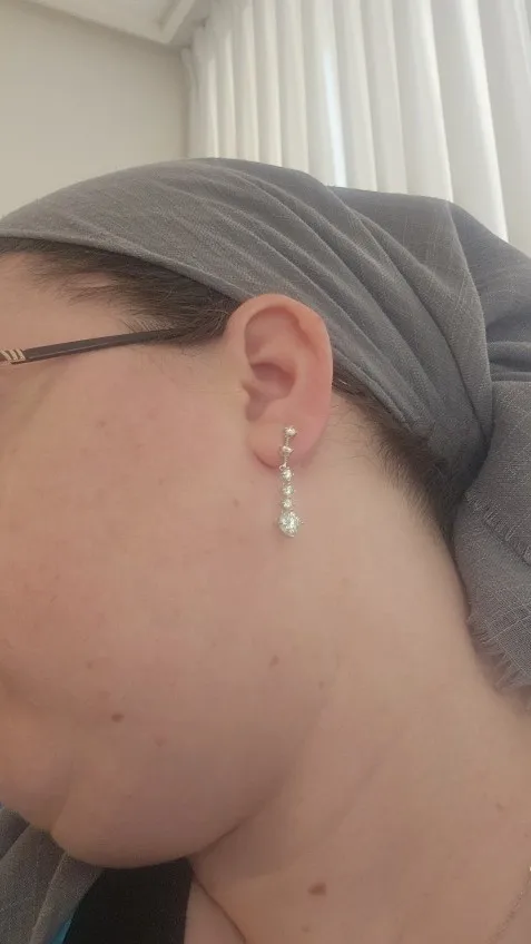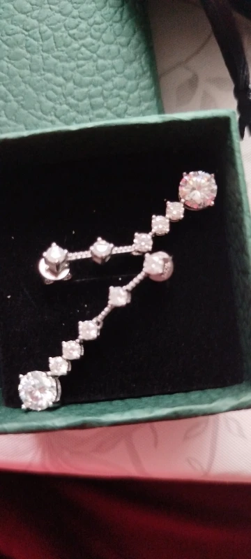أقراط لامعة جدًا، المويسانيت فيها براق للغاية، وليست طويلة جدًا، أعتقد أنها مثالية للمناسبات الخاصة.