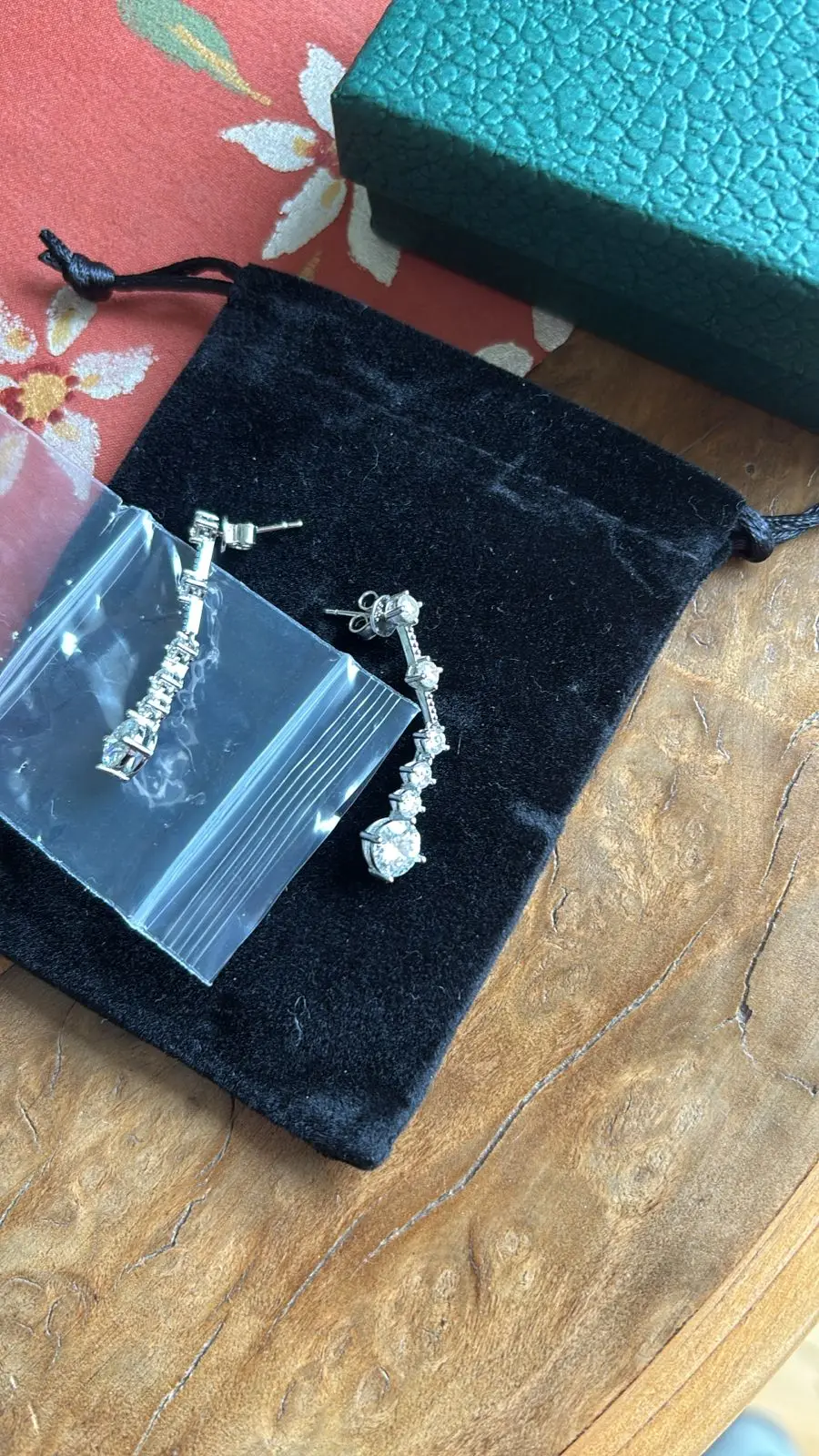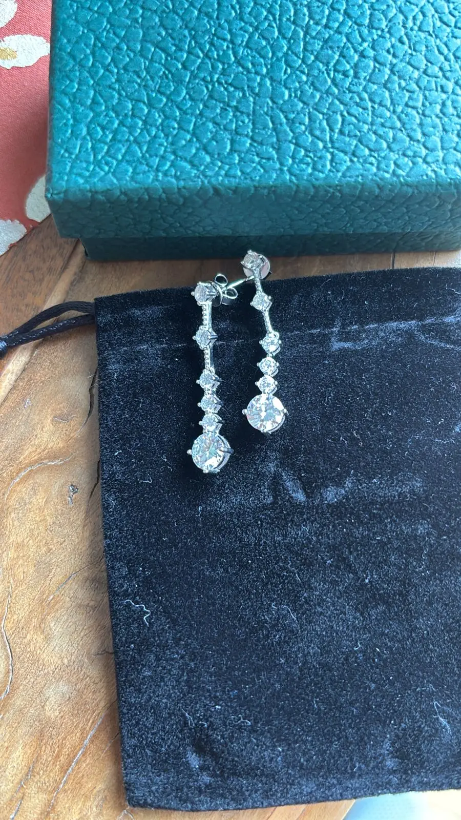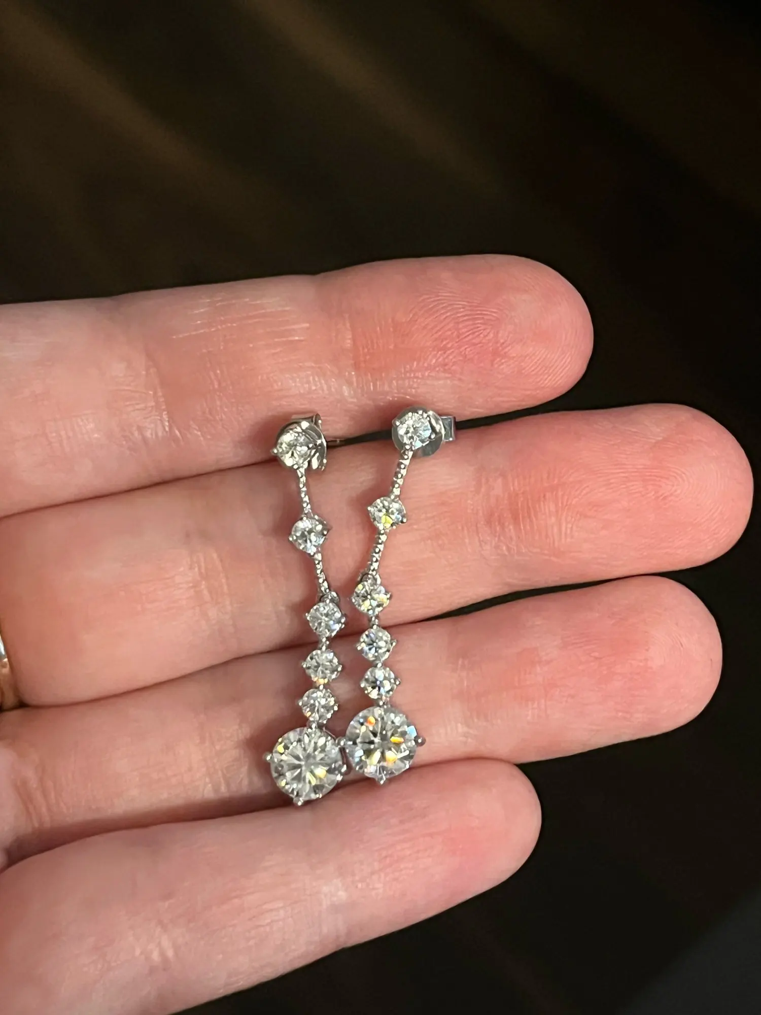 أقراط لامعة جدًا، المويسانيت فيها براق للغاية، وليست طويلة جدًا، أعتقد أنها مثالية للمناسبات الخاصة.