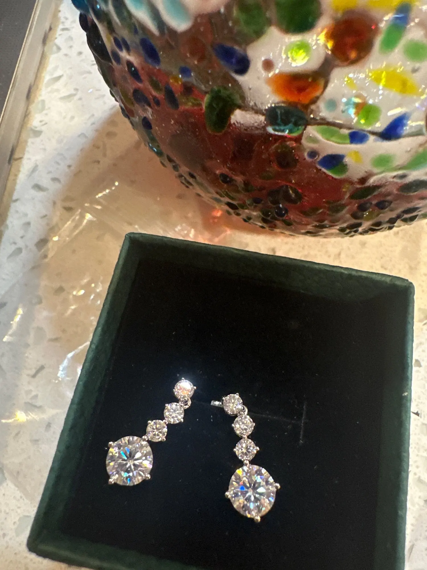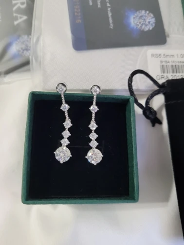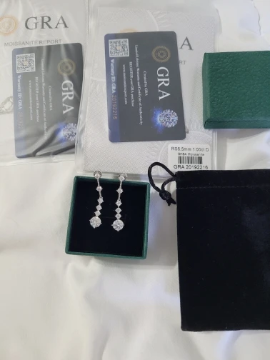 سعيد جداً. خدمة ممتازة وتواصل فعال من المتجر. توصيل سريع مجوهرات فاخرة وعالية الجودة. تم الاستلام مع شهادة GRA وعلبة فاخرة. أقراط أنيقة و جذابة ✨️ . أوصي بهذه الشركة للجميع. تقييمي: خمس نجوم.
