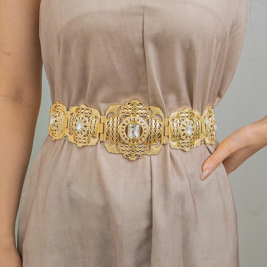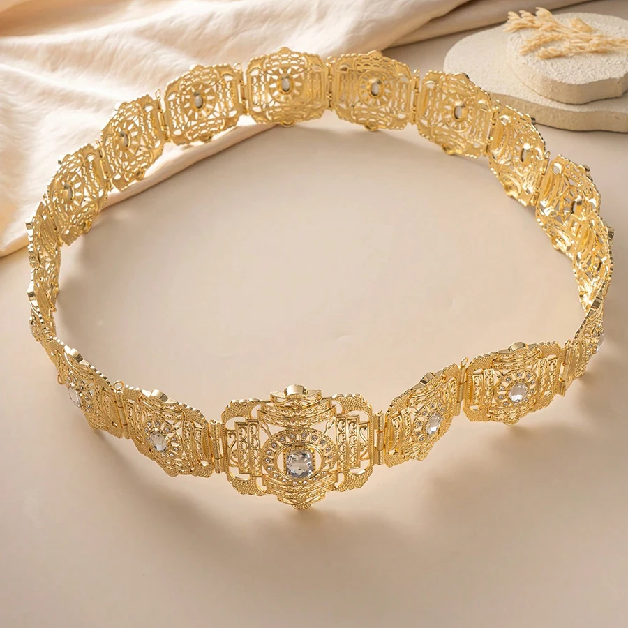 1PC Gold-Plated Turkish Moroccan Bride Kaftan Belt Luxury Middle Eastern Arabian Women's Wedding Festival Clothing Accessory