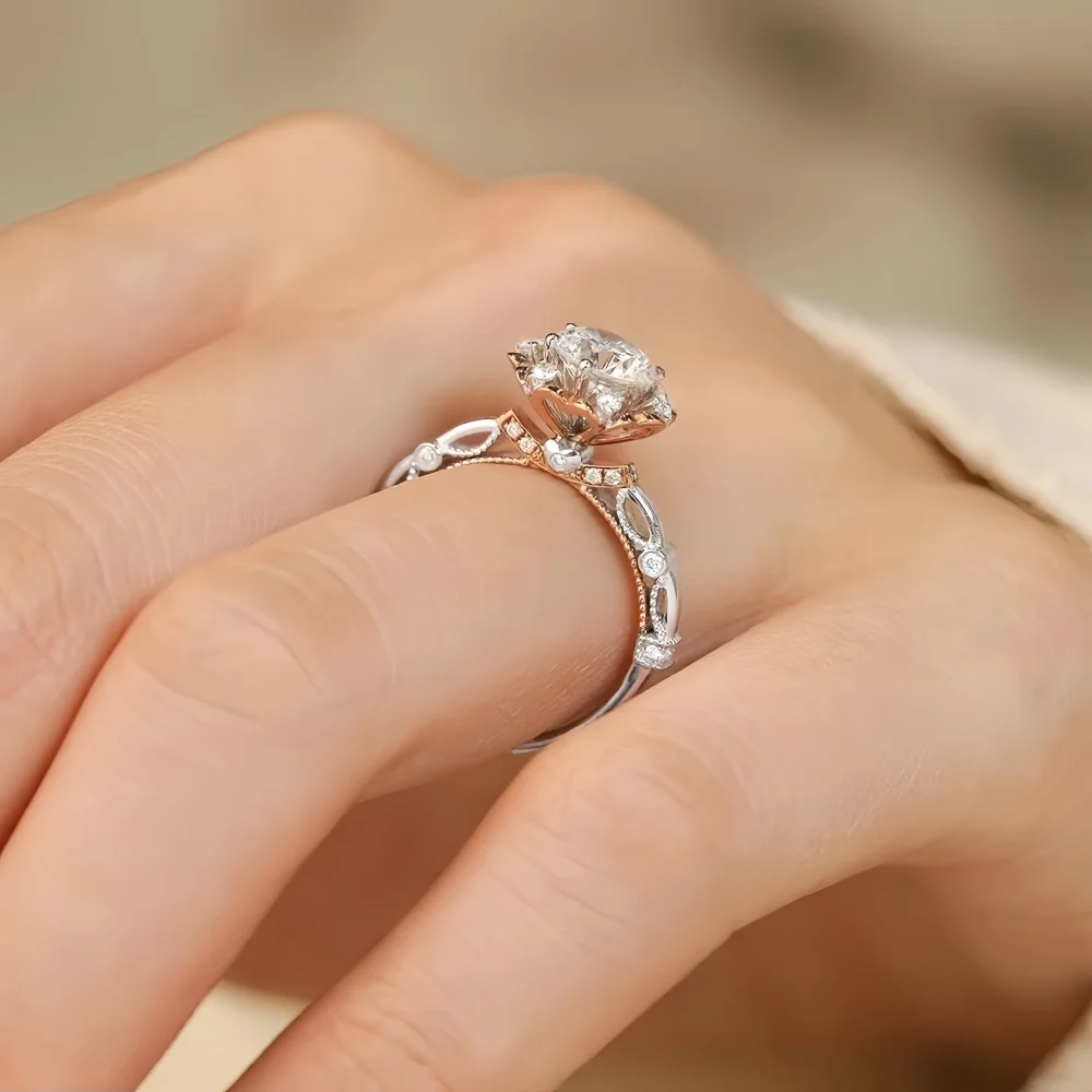 1ct Real Moissanite Ring For Women 925 Sterling Silver Flower Shape Wedding Diamond Band Au750 Plated Fine Jewelry GRA Certified