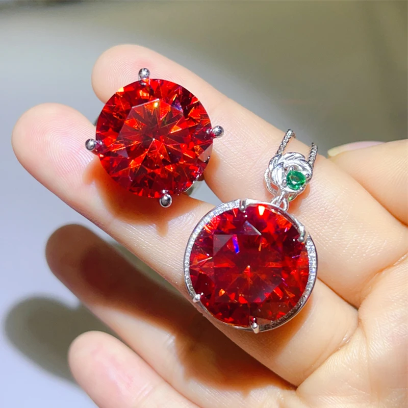 20CT الأحمر مويسانيتي مجموعات مجوهرات قلادة حلقة S925 فضة D اللون روبي الماس قلادة النساء هدايا الزفاف شهادة