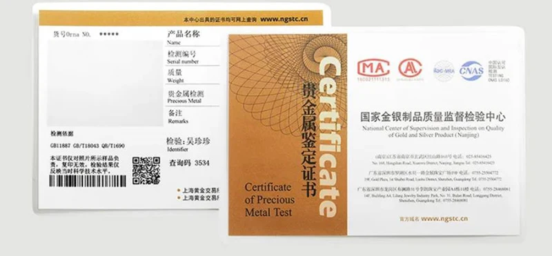Certificate Number: 925 Sterling Silver