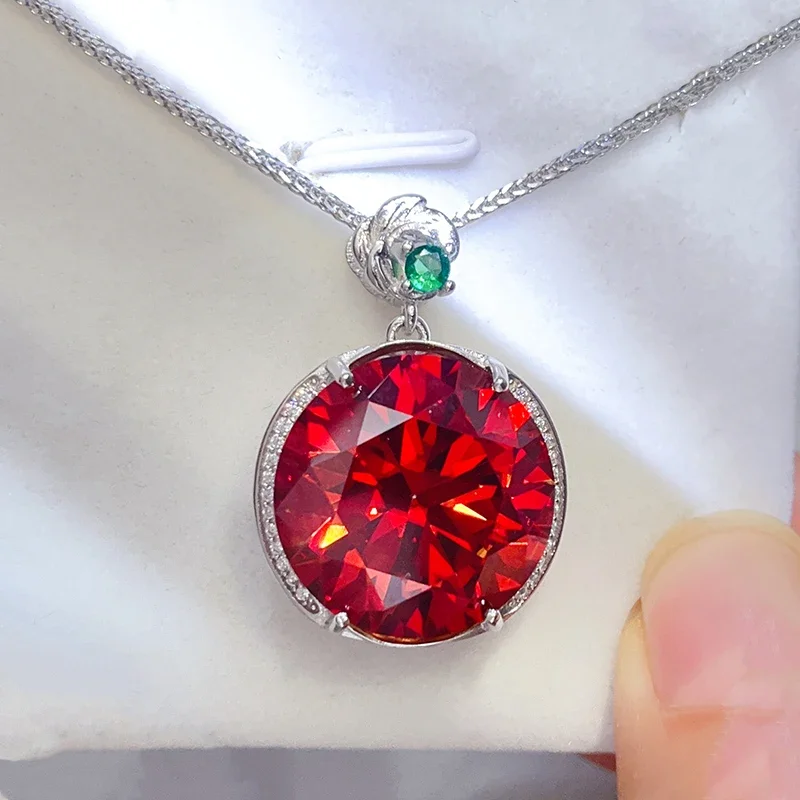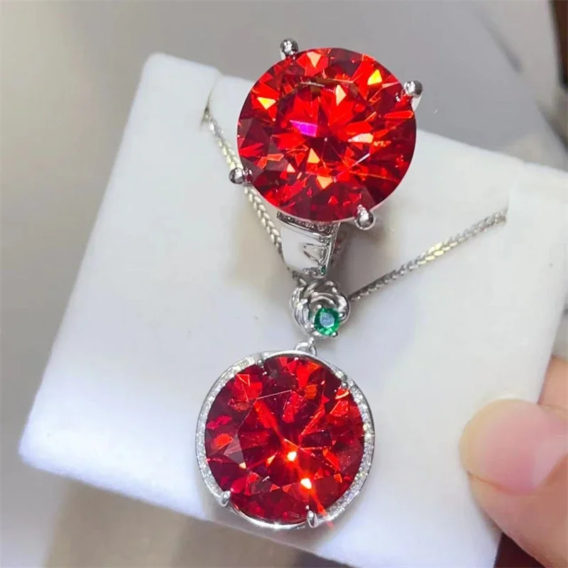 20CT الأحمر مويسانيتي مجموعات مجوهرات قلادة حلقة S925 فضة D اللون روبي الماس قلادة النساء هدايا الزفاف شهادة