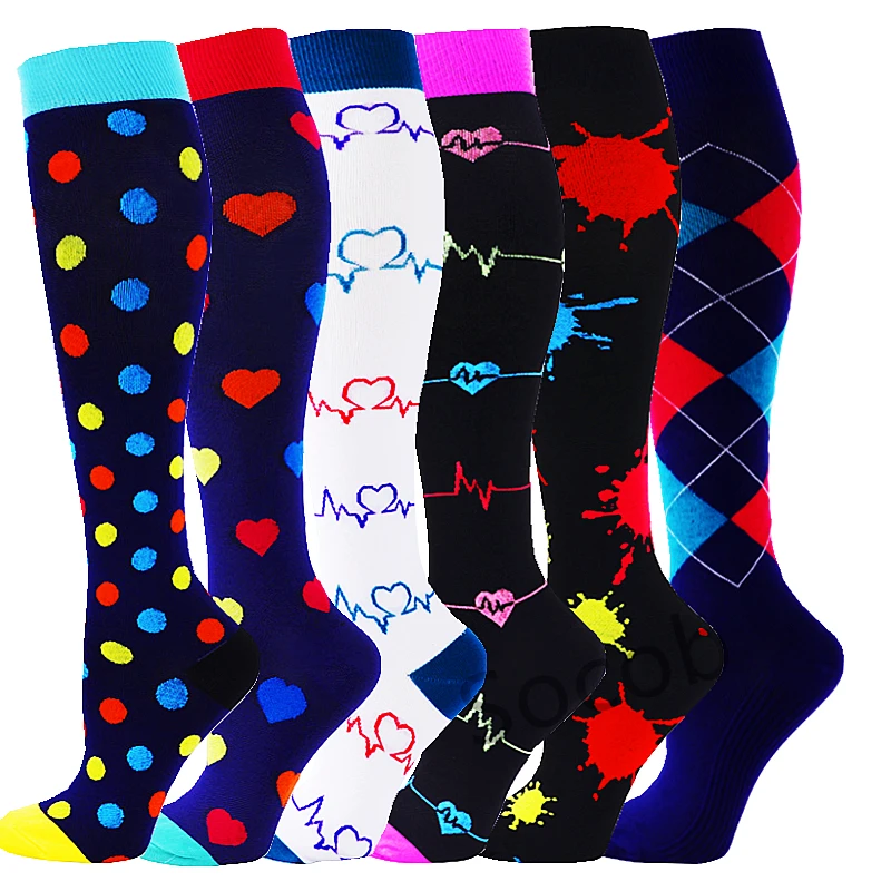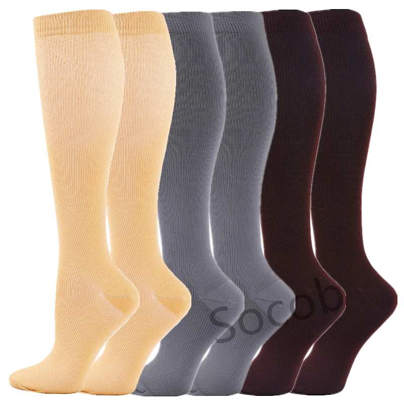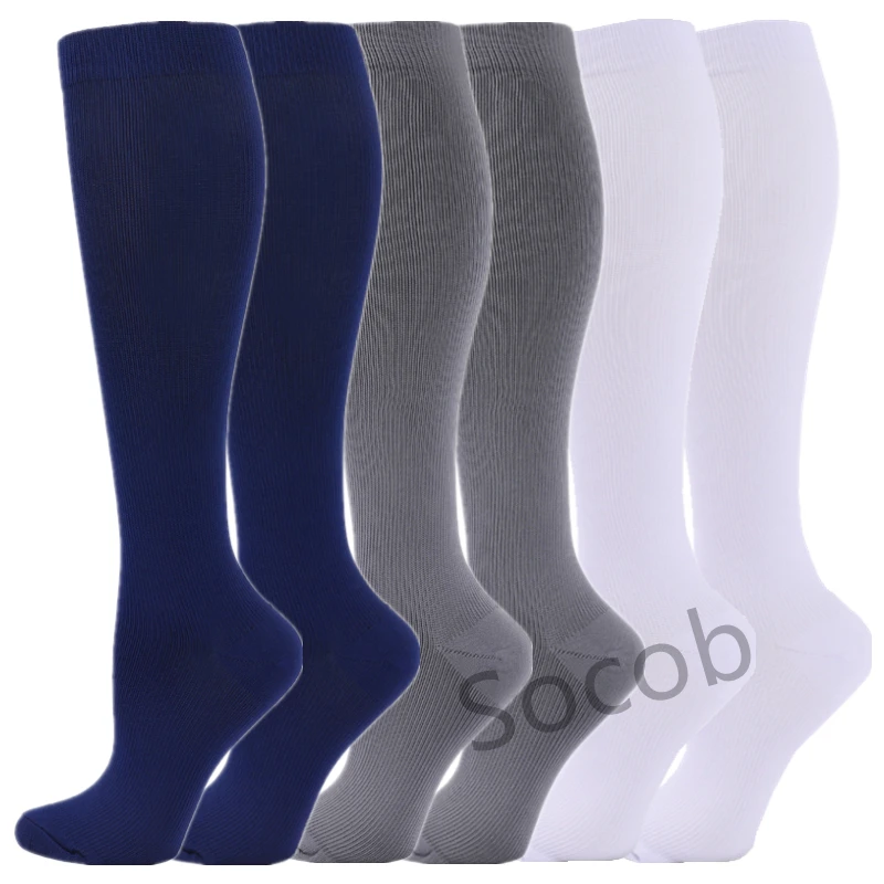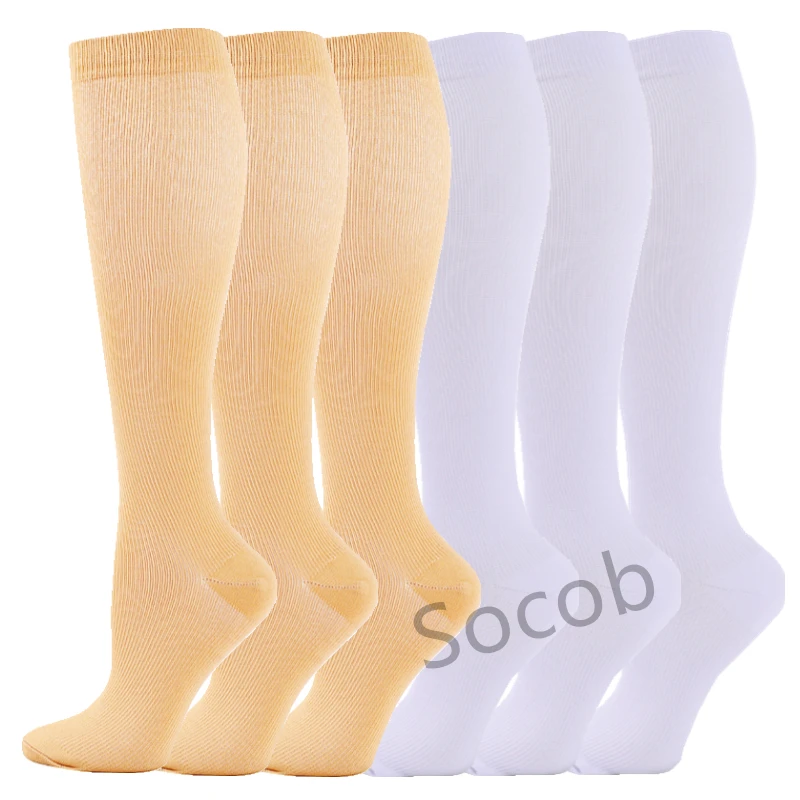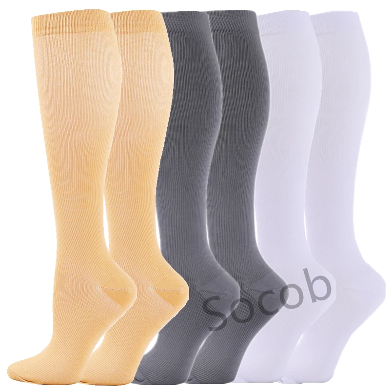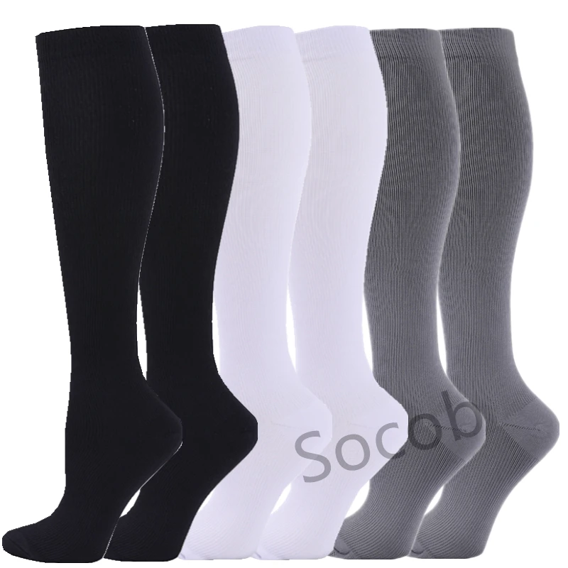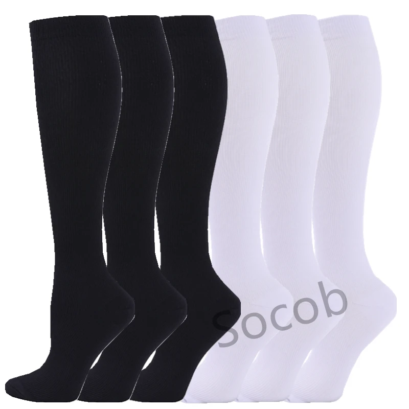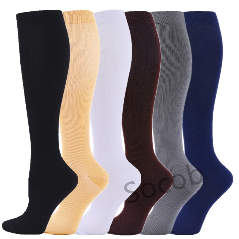 6/7 Pairs جوارب ضغط النساء الرجال الركبة عالية جوارب رياضية لتشغيل ماراثون الدراجات وذمة السكري الدوالي الجوارب