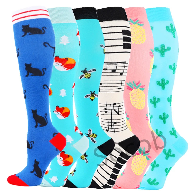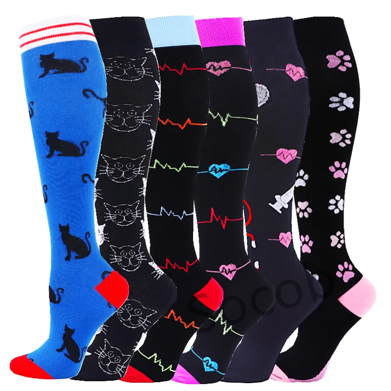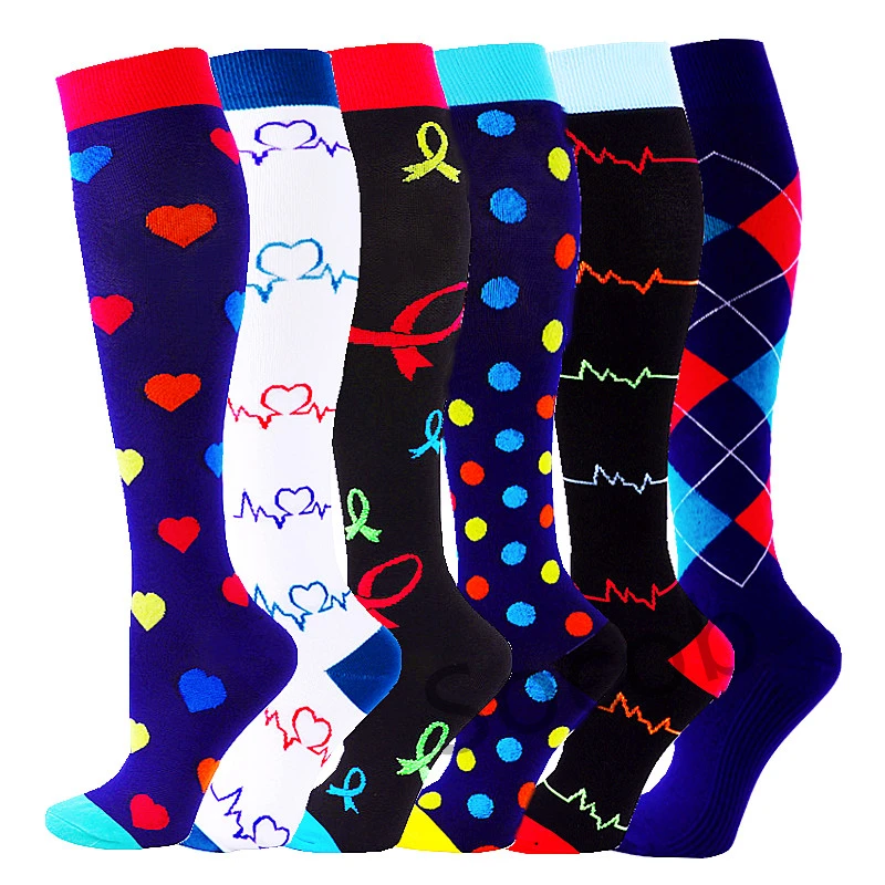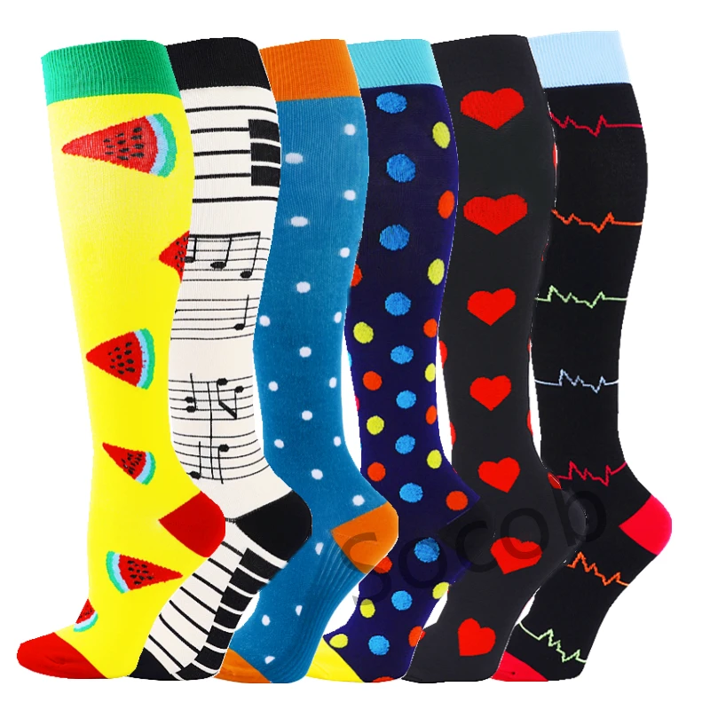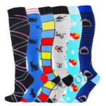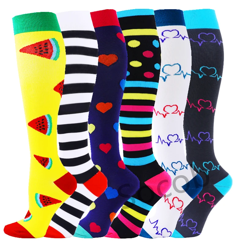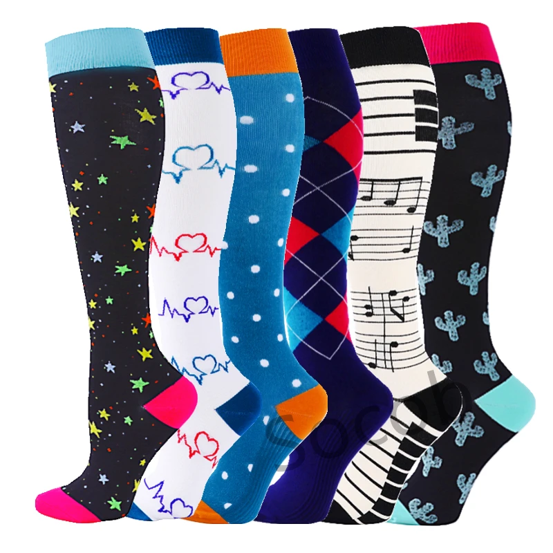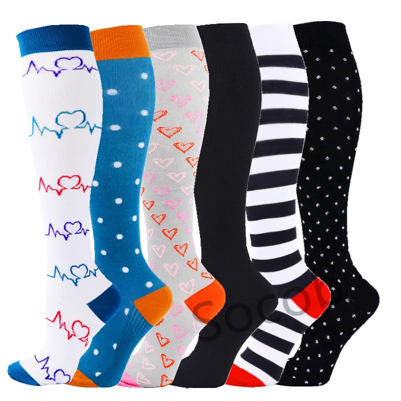 6/7 Pairs جوارب ضغط النساء الرجال الركبة عالية جوارب رياضية لتشغيل ماراثون الدراجات وذمة السكري الدوالي الجوارب