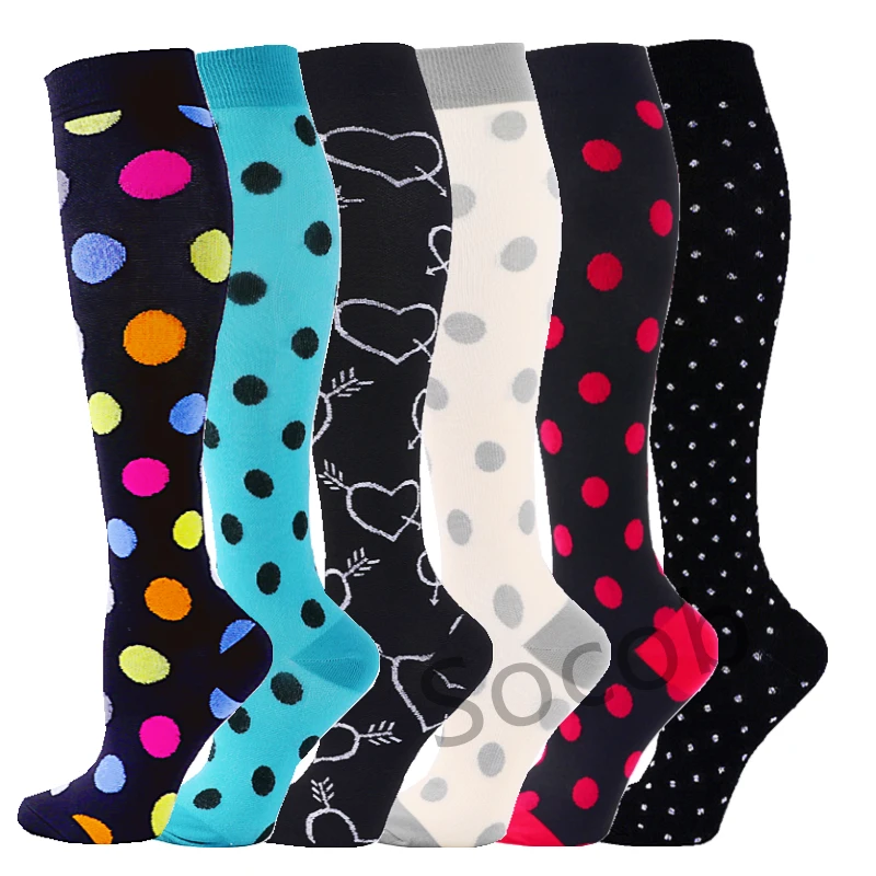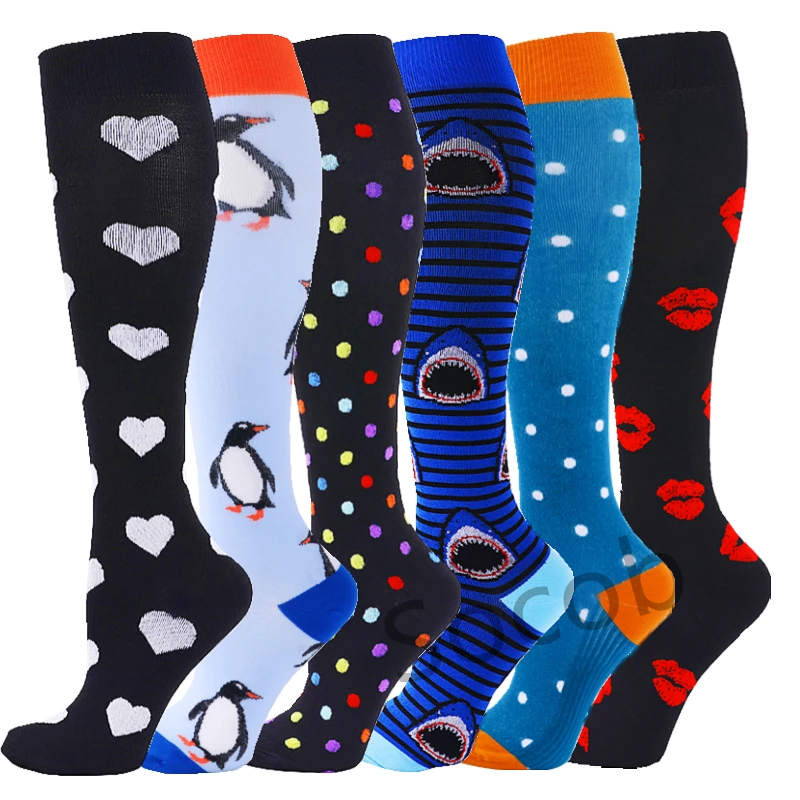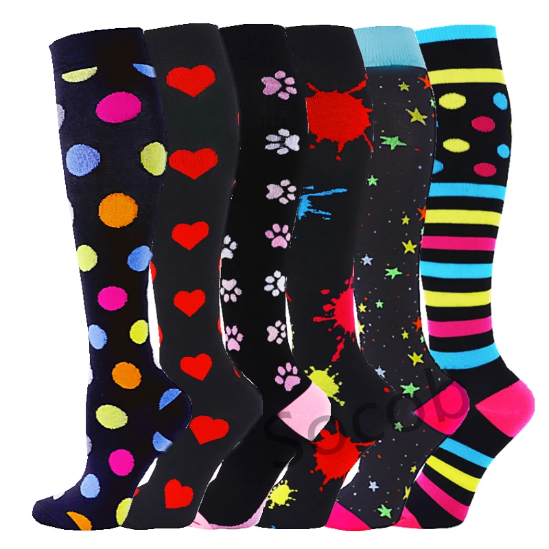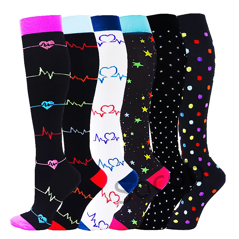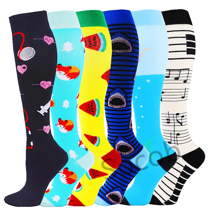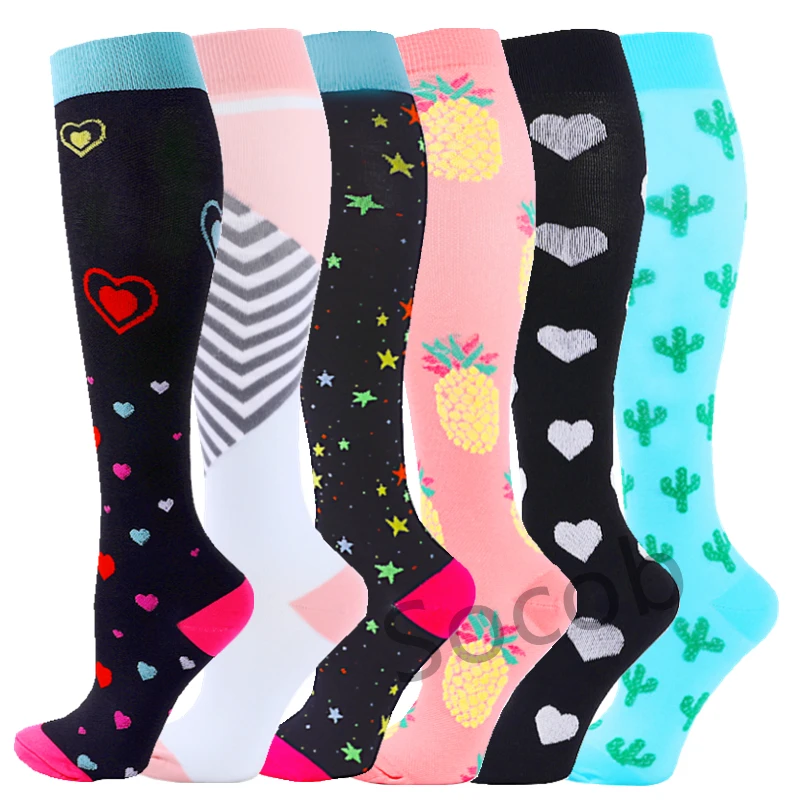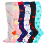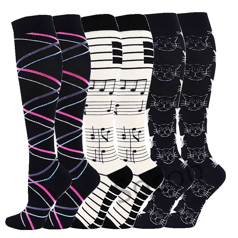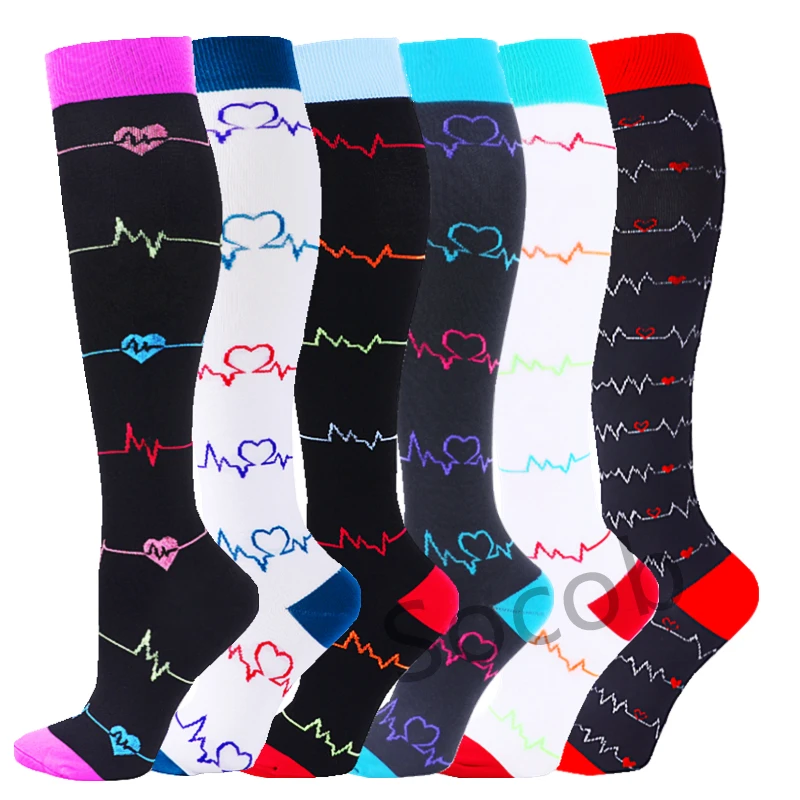 6/7 Pairs جوارب ضغط النساء الرجال الركبة عالية جوارب رياضية لتشغيل ماراثون الدراجات وذمة السكري الدوالي الجوارب
