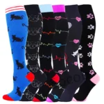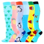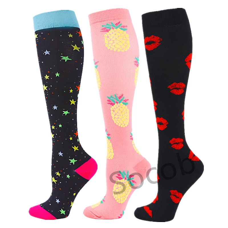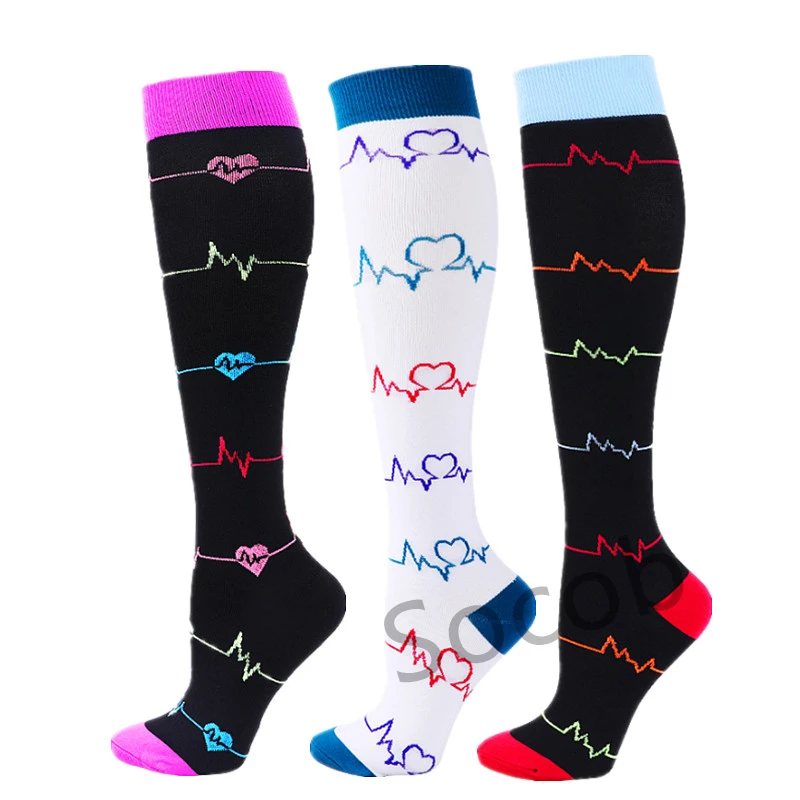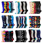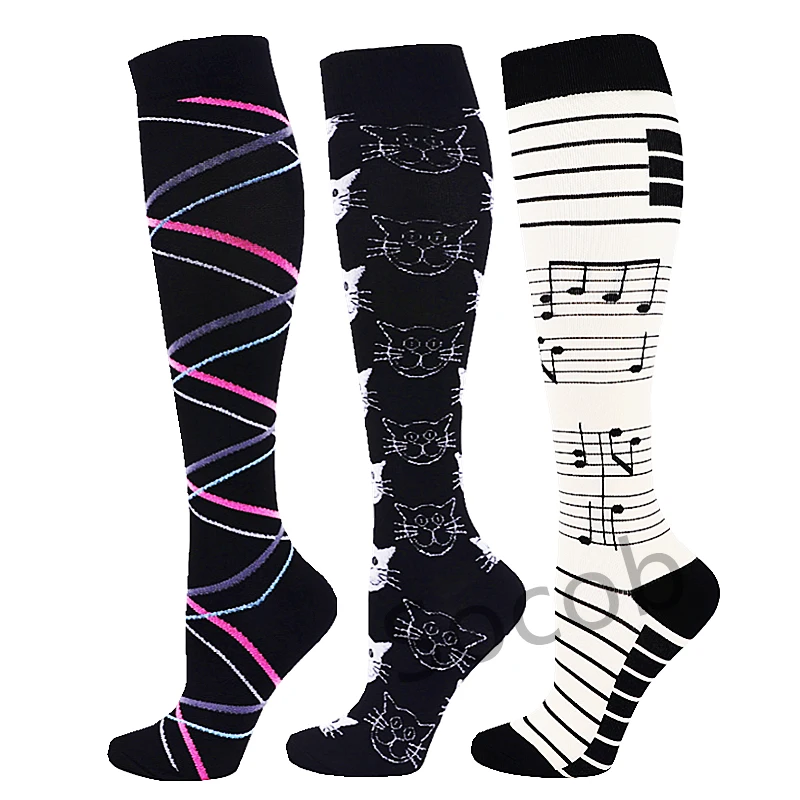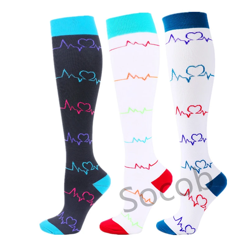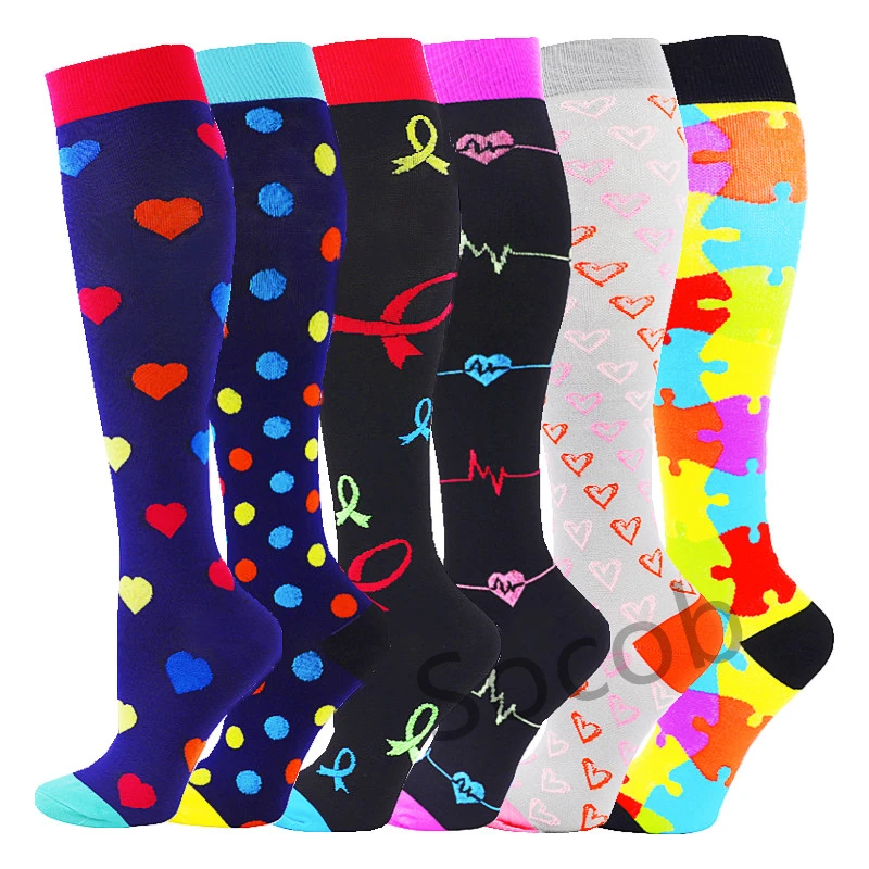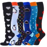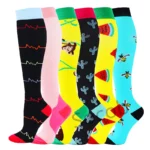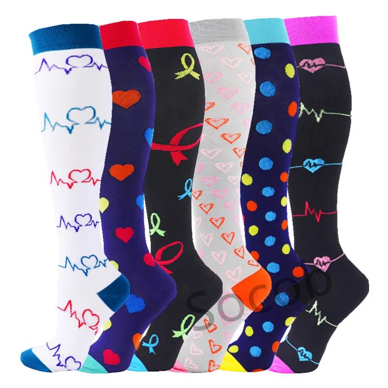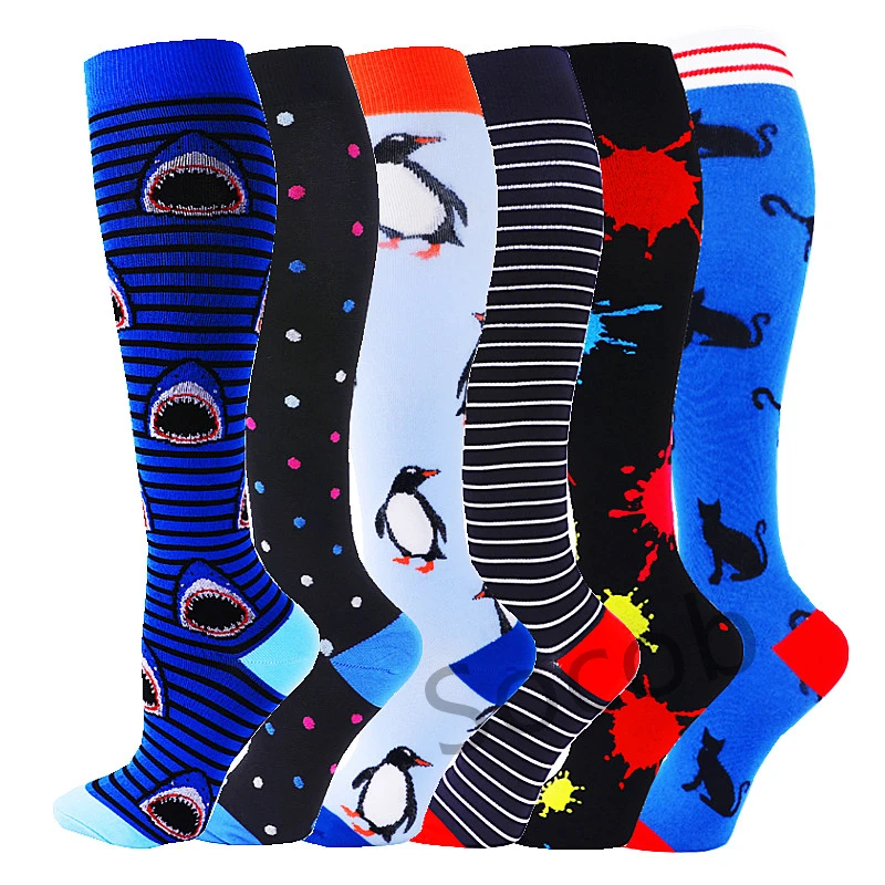 6/7 Pairs جوارب ضغط النساء الرجال الركبة عالية جوارب رياضية لتشغيل ماراثون الدراجات وذمة السكري الدوالي الجوارب