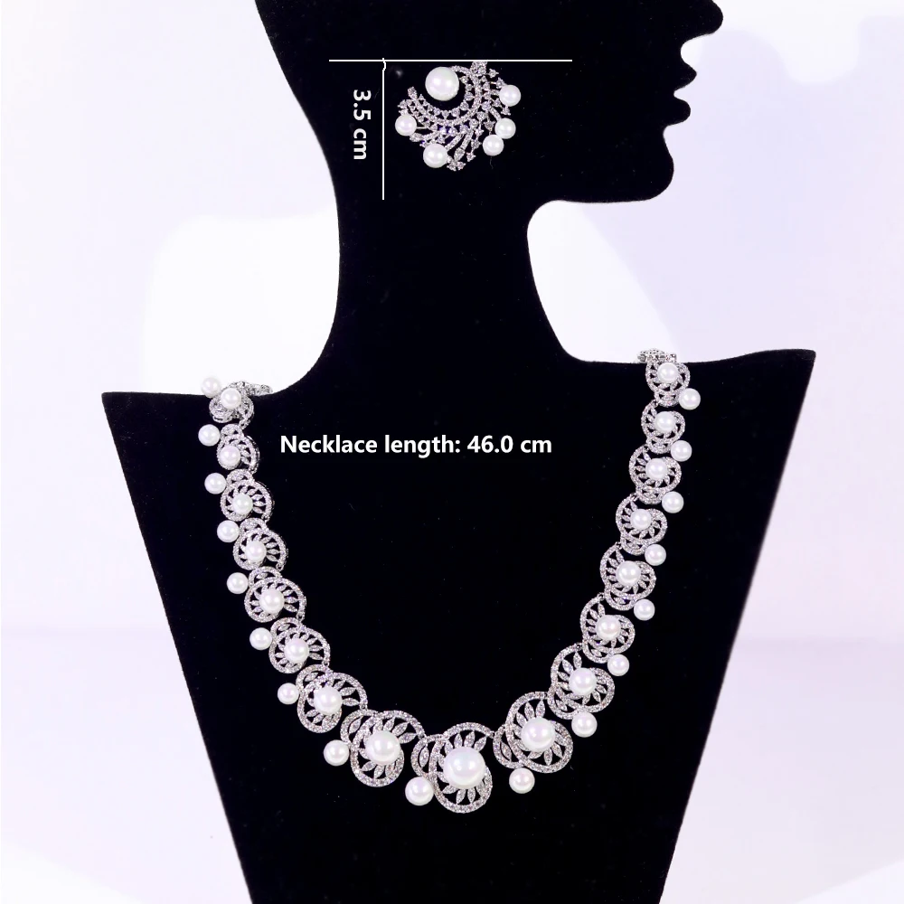 ASNORA الأبيض زركون الفاخرة المختنق Heptacolor كبير اللؤلؤ قلادة الزفاف الزفاف مجموعات مجوهرات الحفلات للنساء X0538
