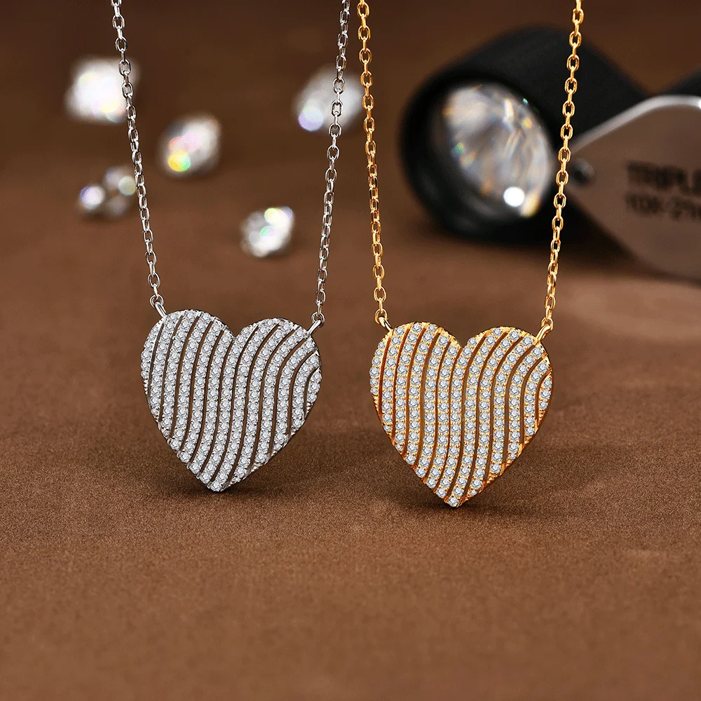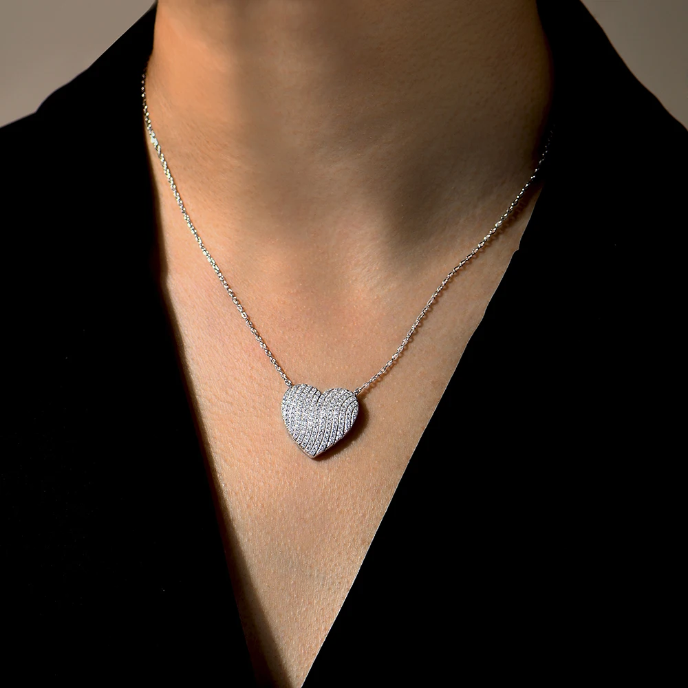 قلادة مويسانيت فاخرة جديدة من ATTAGEMS لعام 2024، لون D VVS1، للنساء، شكل قلب متلألئ، فضة إسترليني عيار 925 نقية 100% مجوهرات