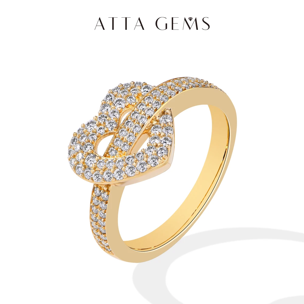 ATTAGEMS DVVS1 خاتم مويسانيتي كامل 925 فضة 18K مطلية بالذهب شكل قلب للنساء عطلة هدايا كلاسيكية غرامة مجوهرات