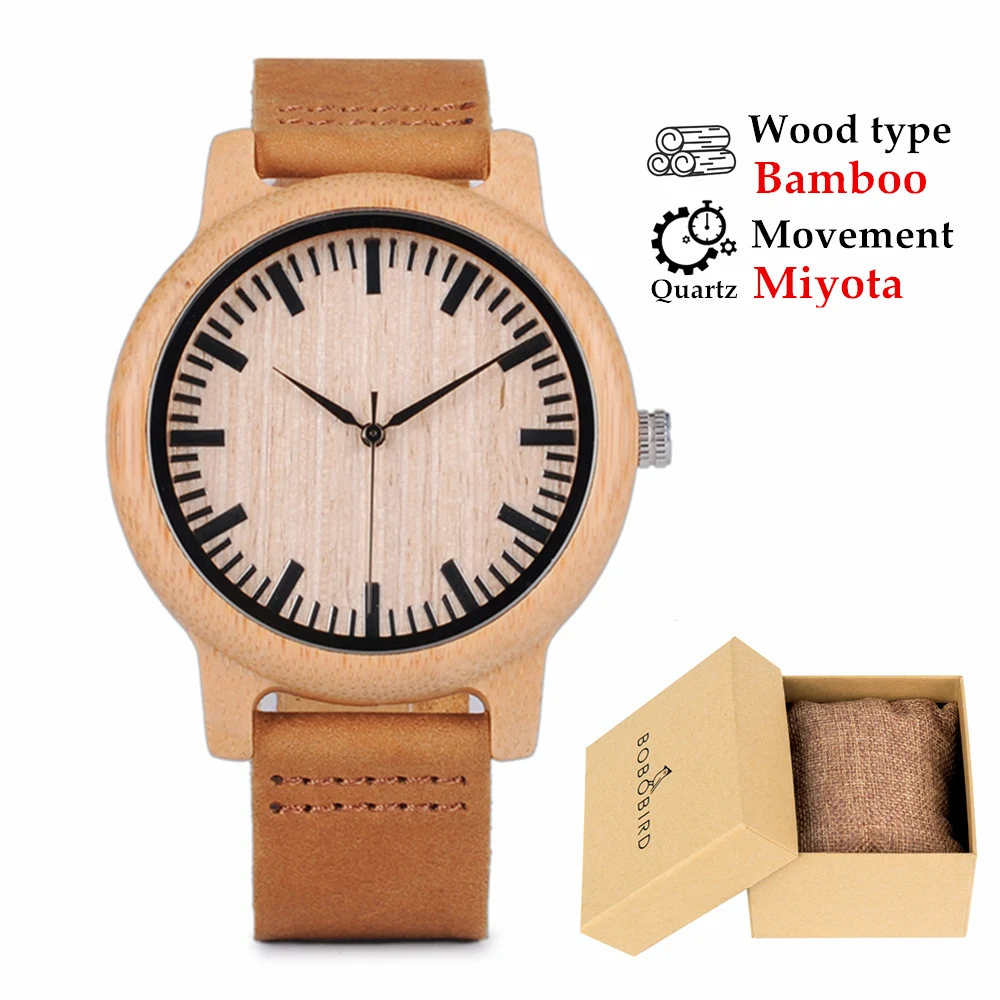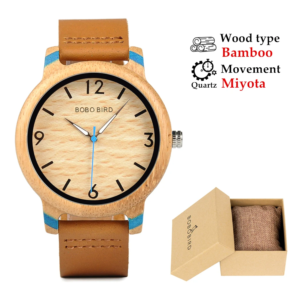 BOBO BIRD Relojes ساعات للرجال والنساء ساعة من الخيزران شعار حركة كوارتز مخصص دروبشيبينغ