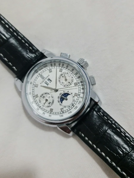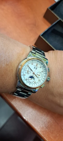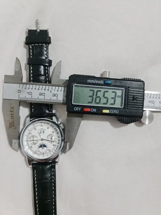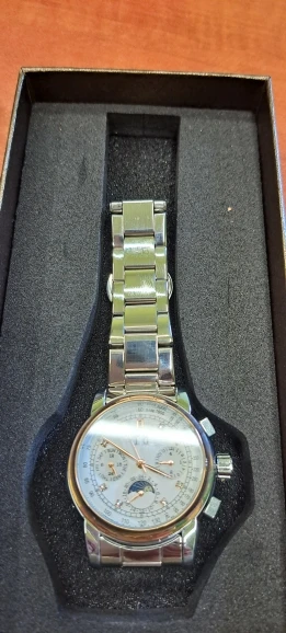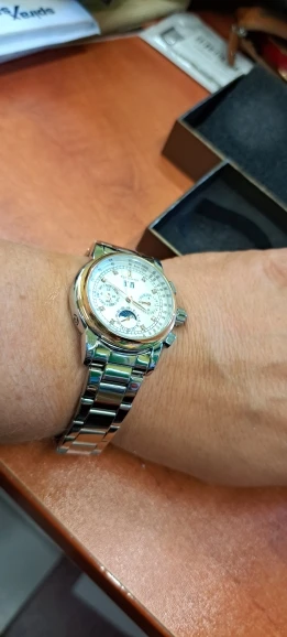 زوجتي سعيدة للغاية. الساعة أجمل في الواقع من الصور. وأيًا كان ما تريده أم لا: الساعة تعمل بدقة شديدة وجميع الوظائف على ما يرام. السؤال الوحيد الذي نطرحه على أنفسنا هو: لماذا يحتوي الشهر على 40 يومًا؟