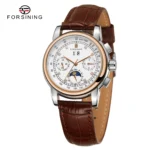 FORSINING-ساعات معصم فاخرة ميكانيكية أوتوماتيكية للنساء ، ساعة متعددة الوظائف بالماس على شكل قمر ، من FORSINING