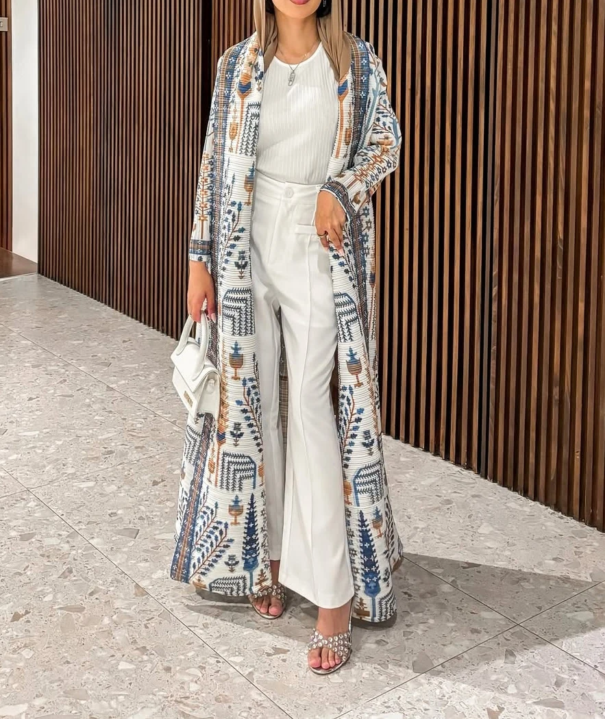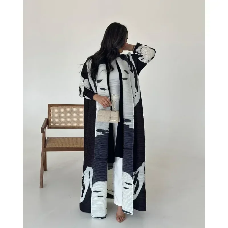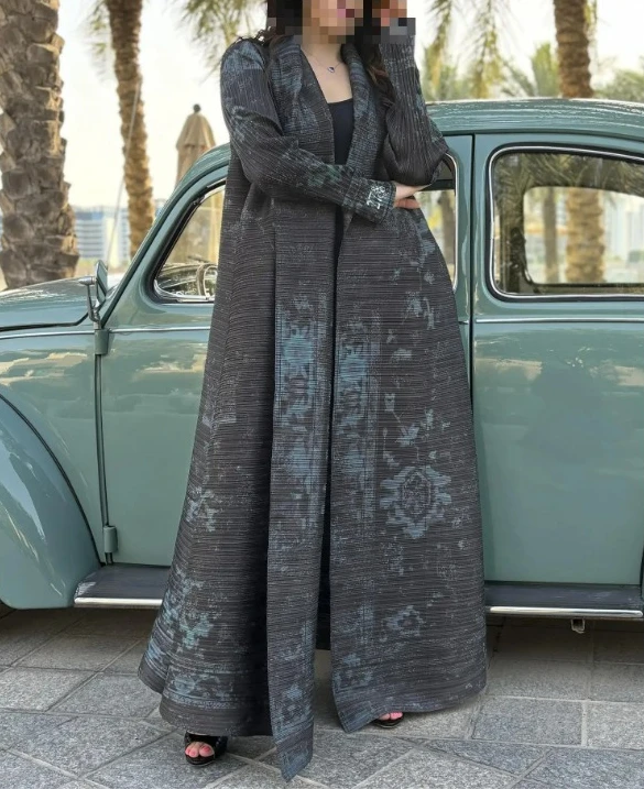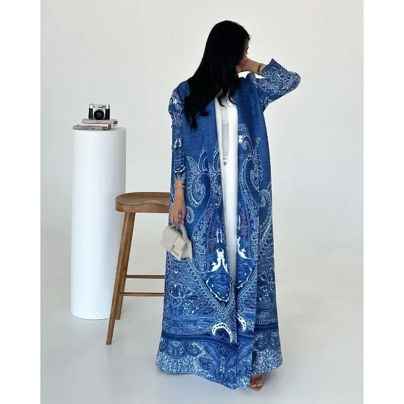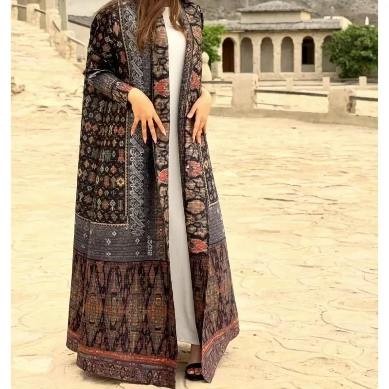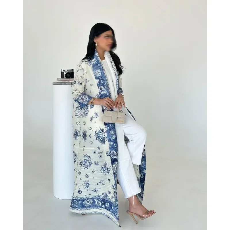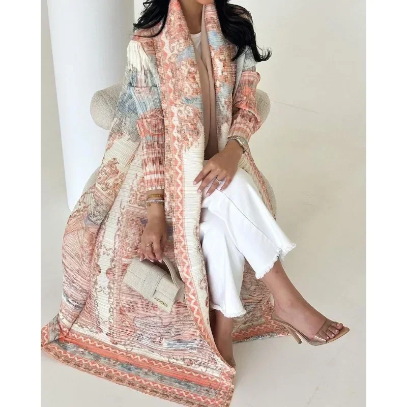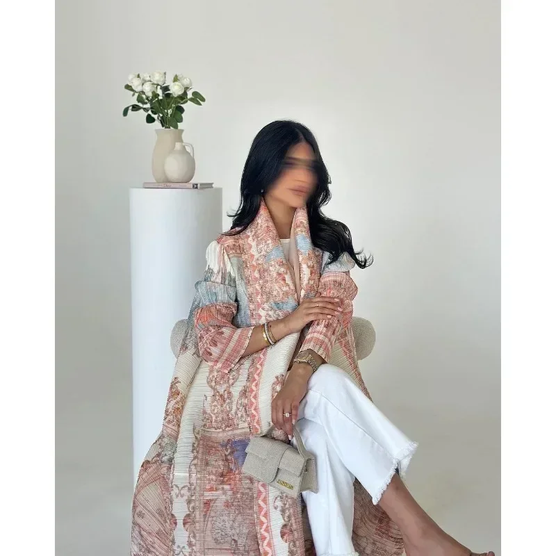 KAF مطوي المرأة خندق معطف خمر سترة مطبوعة تصميم فضفاض حجم كبير المرأة فستان طويل دبي الإناث الفاخرة عباية 2024