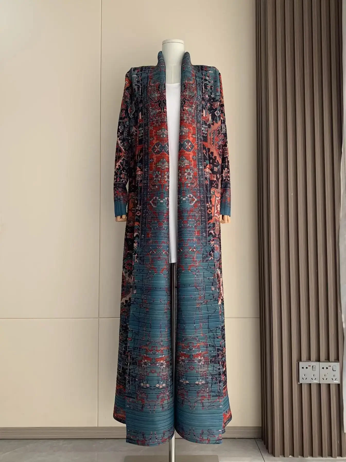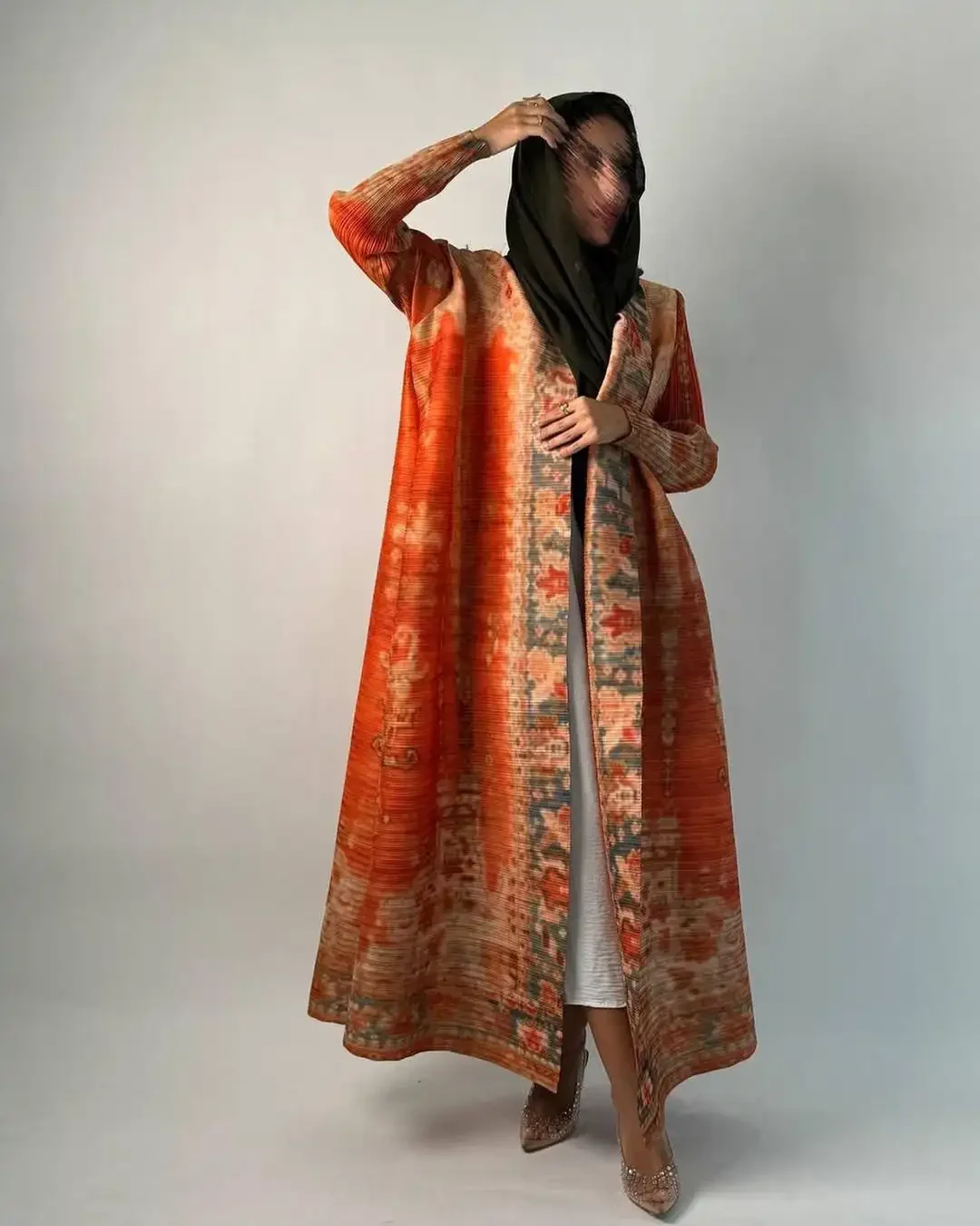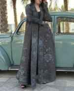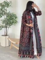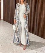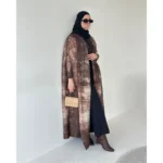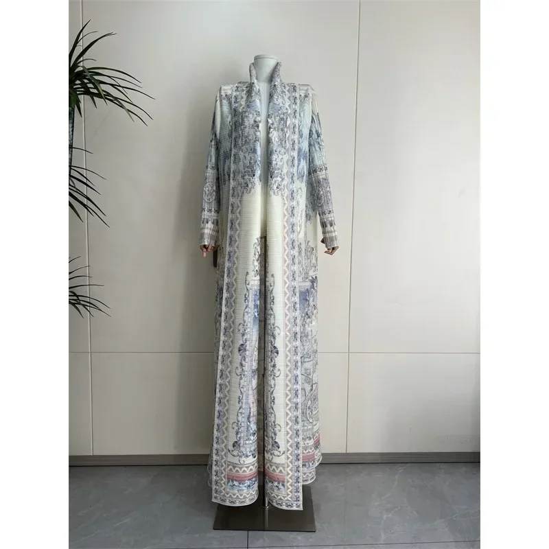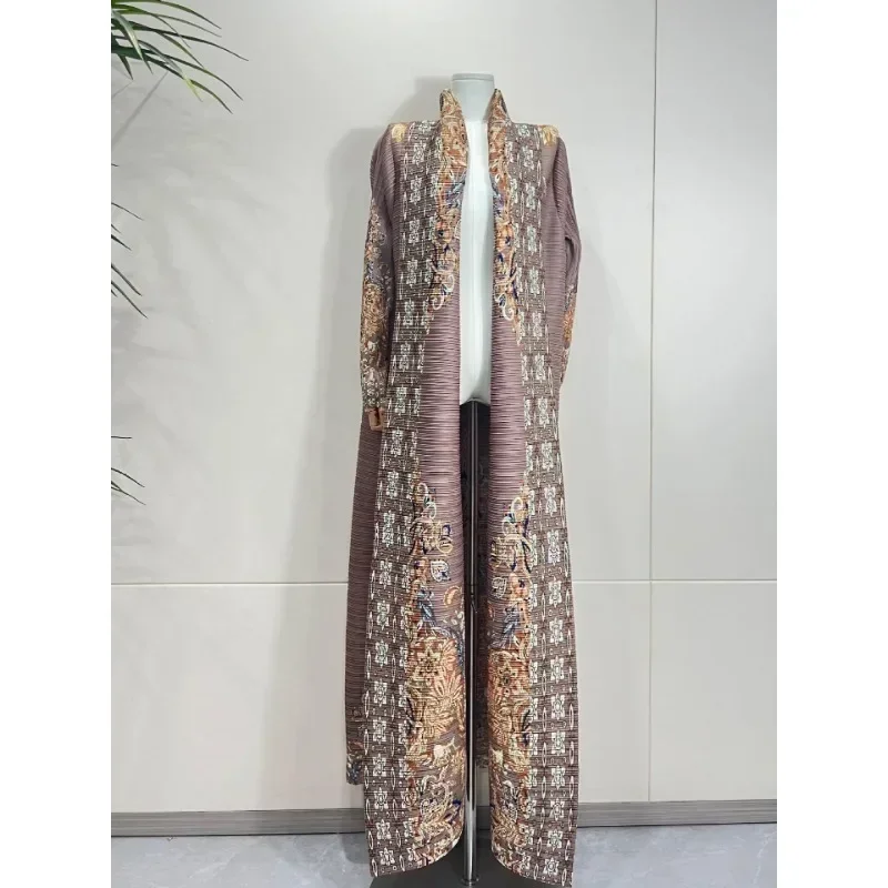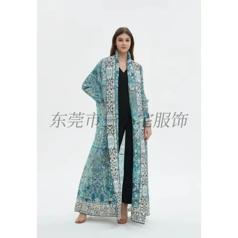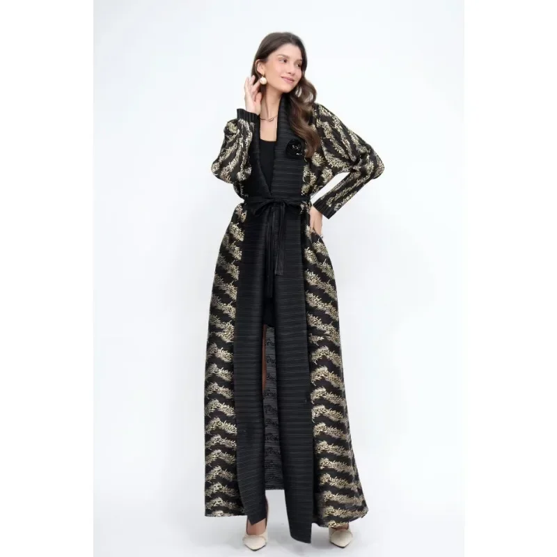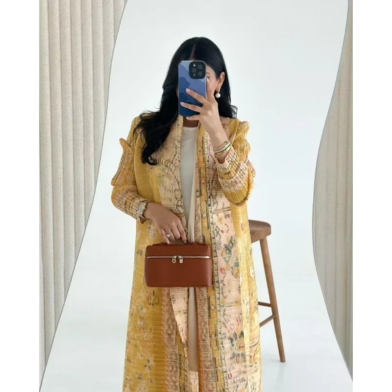 KAF مطوي المرأة خندق معطف خمر سترة مطبوعة تصميم فضفاض حجم كبير المرأة فستان طويل دبي الإناث الفاخرة عباية 2024