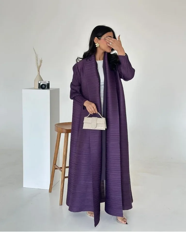 3 مراجعات لـ KAF مطوي المرأة خندق معطف خمر سترة مطبوعة تصميم فضفاض حجم كبير المرأة فستان طويل دبي الإناث الفاخرة عباية 2024