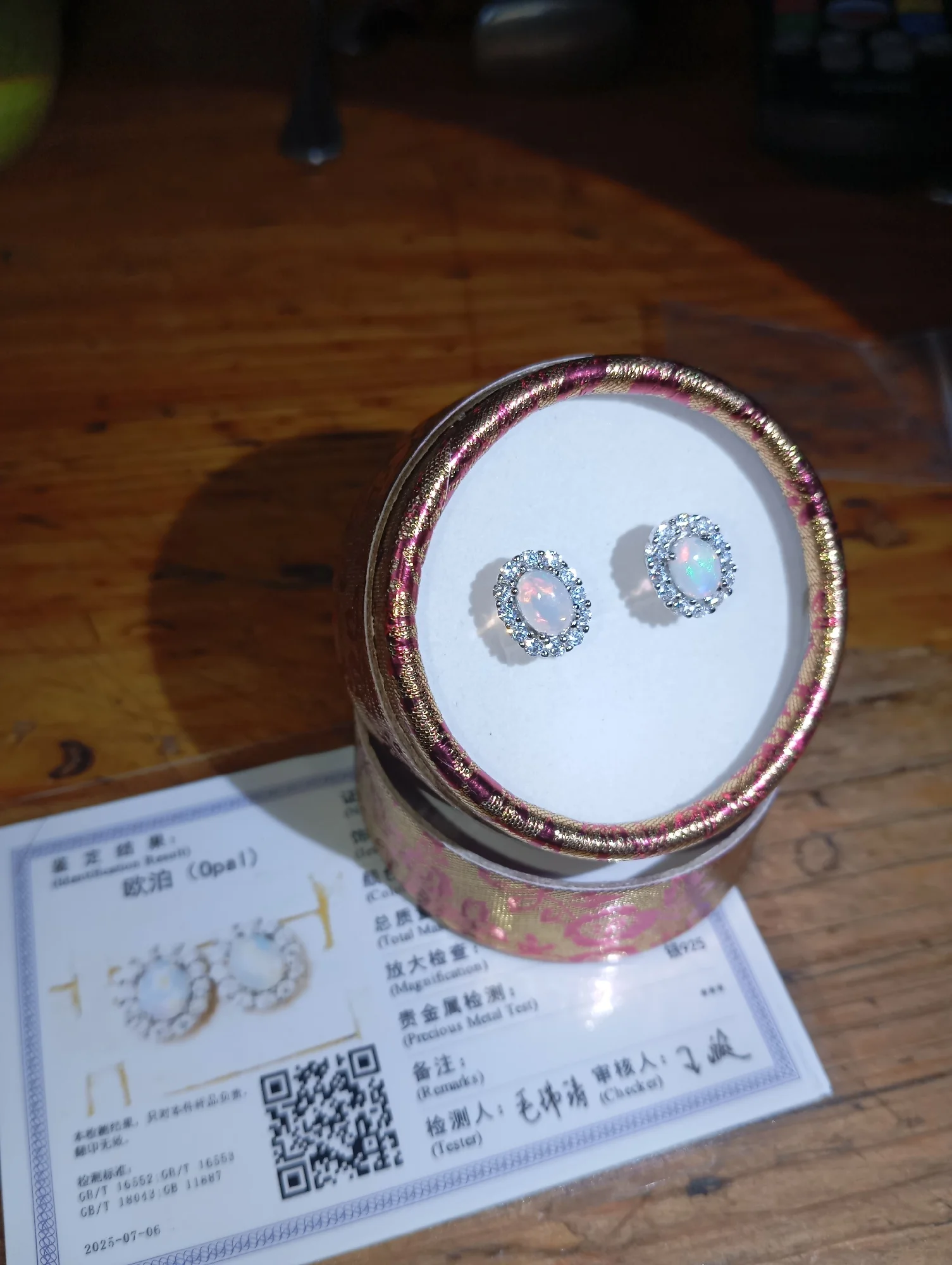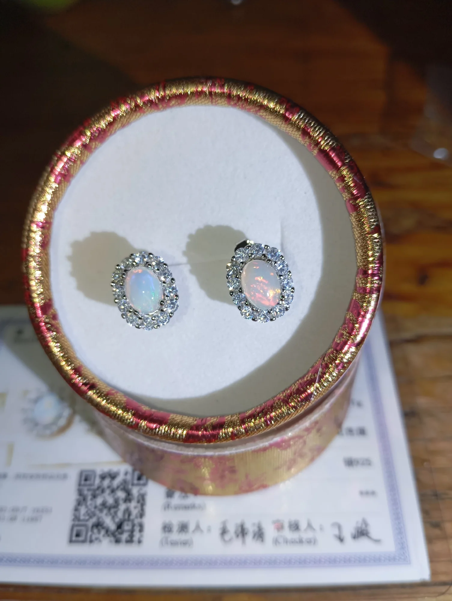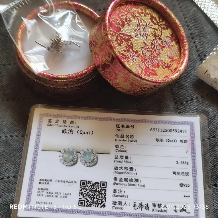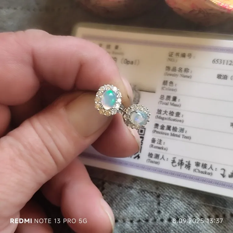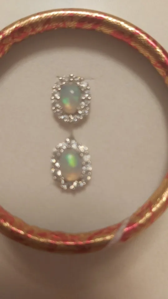 أقراط جميلة مصنوعة من أوبال حقيقي. الصور تظهر الشهادة المرفقة التي تؤكد الأصالة. أنا راضٍ جدًا.