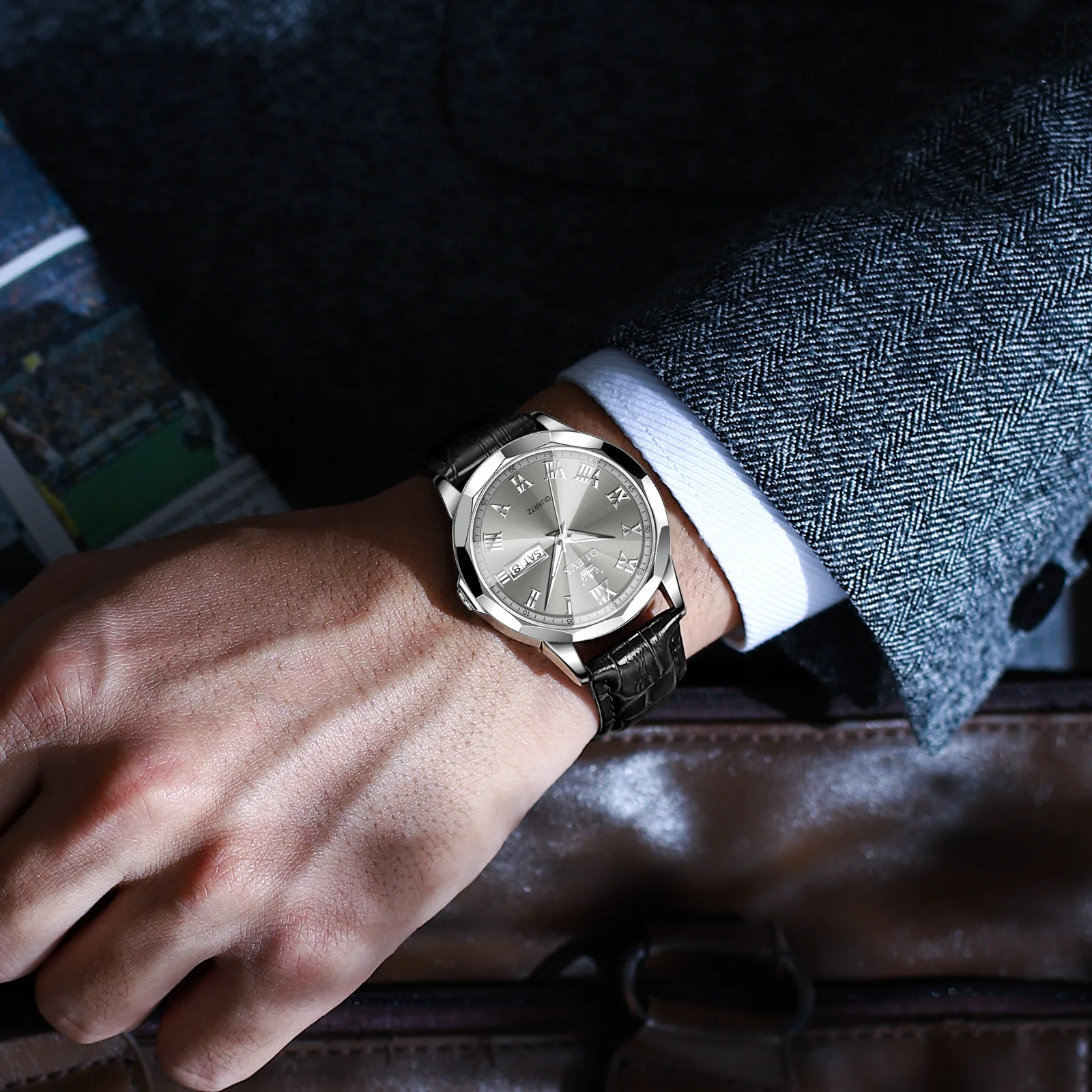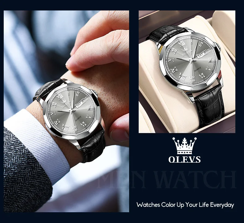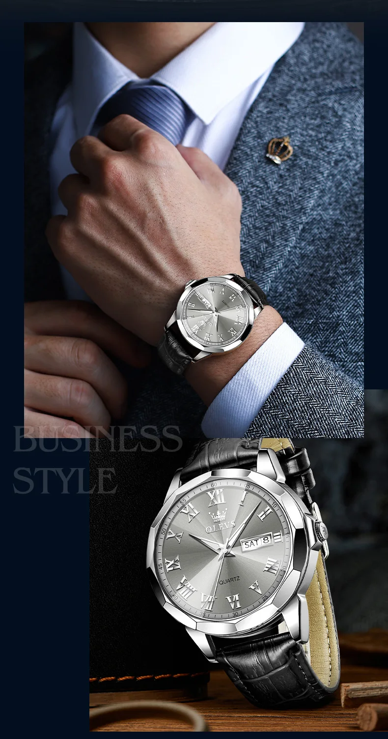 مراجعتين لـ OLEVS أفضل بيع الرجال ووتش حزام من الجلد أزياء عارضة للماء ساعات رجالية عالية الجودة عارضة الأعمال ساعة معصم الرجال