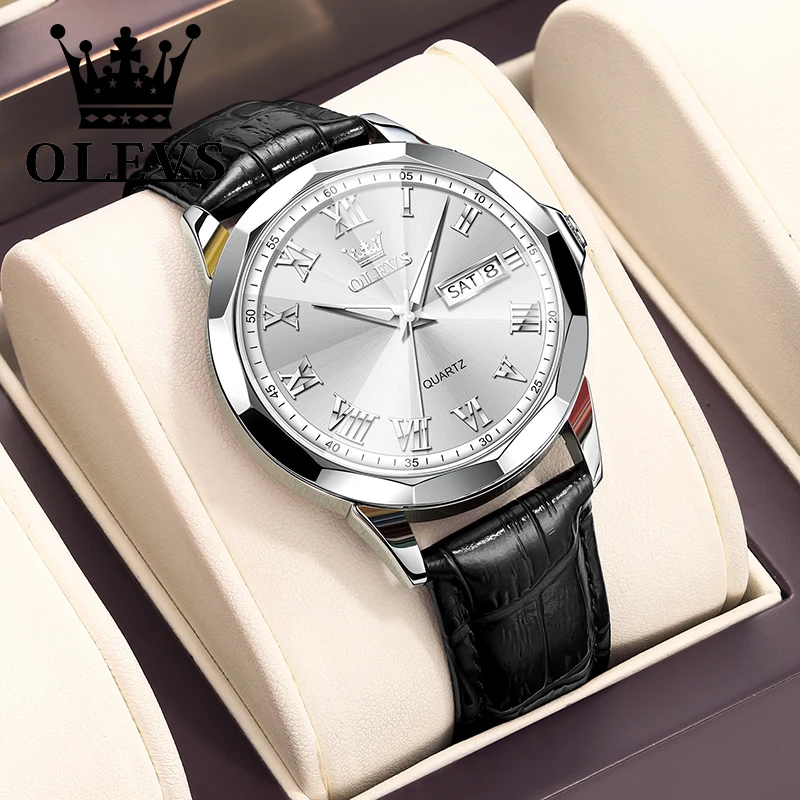 OLEVS أفضل بيع الرجال ووتش حزام من الجلد أزياء عارضة للماء ساعات رجالية عالية الجودة عارضة الأعمال ساعة معصم الرجال