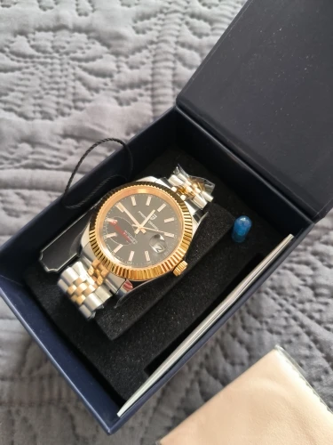 لقد استلمتها للتو، لقد وصلوا في الموعد المحدد للتسليم، والساعة تبدو جميلة جدًا، أتمنى أن تعمل الآلية كما هو متوقع.