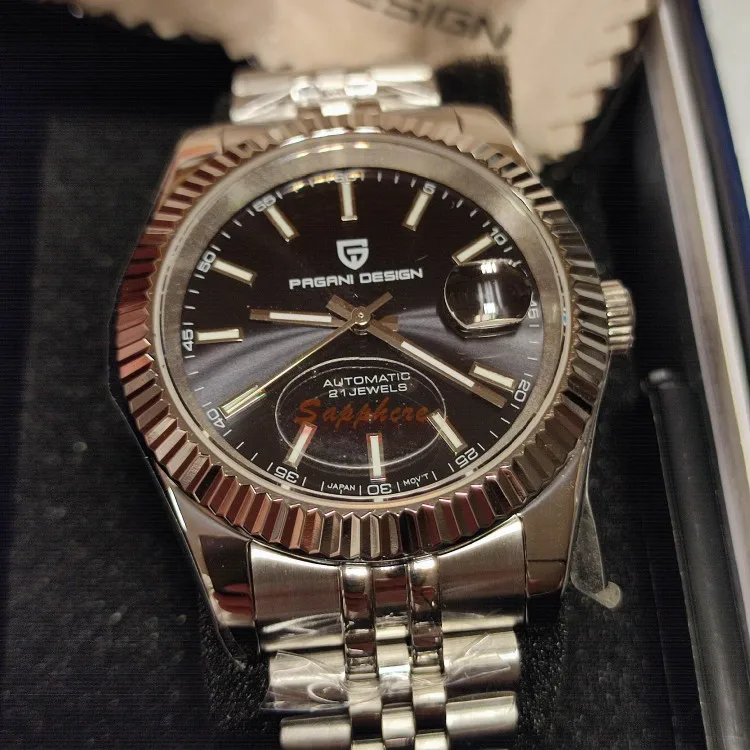 58 مراجعة لـ PAGANI تصميم رجل ساعة ميكانيكية العلامة التجارية الفاخرة ساعة أوتوماتيكية الفولاذ المقاوم للصدأ 100 متر مقاوم للماء ساعة الرجال ساعة Reloj Hombre